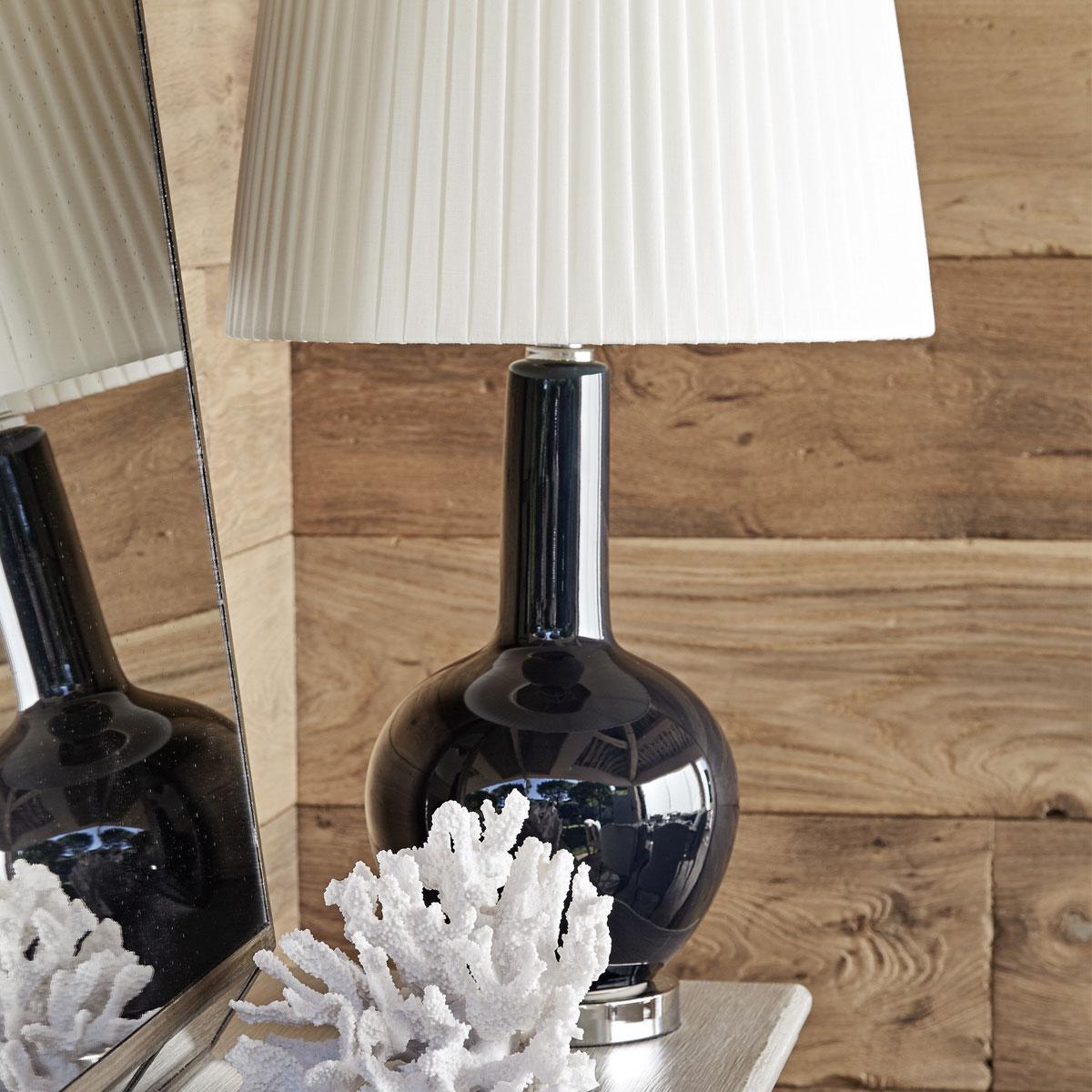 Shapely and elegant, our ceramic Grenadilla Lamp makes an excellent bedside lamp – one that adds a pop of colour. If you're feeling brave, why not offset the lamp base's high-gloss finish and round metal base with a patterned lampshade? We recommend a 40-45cm diameter shade for use with this lamp.