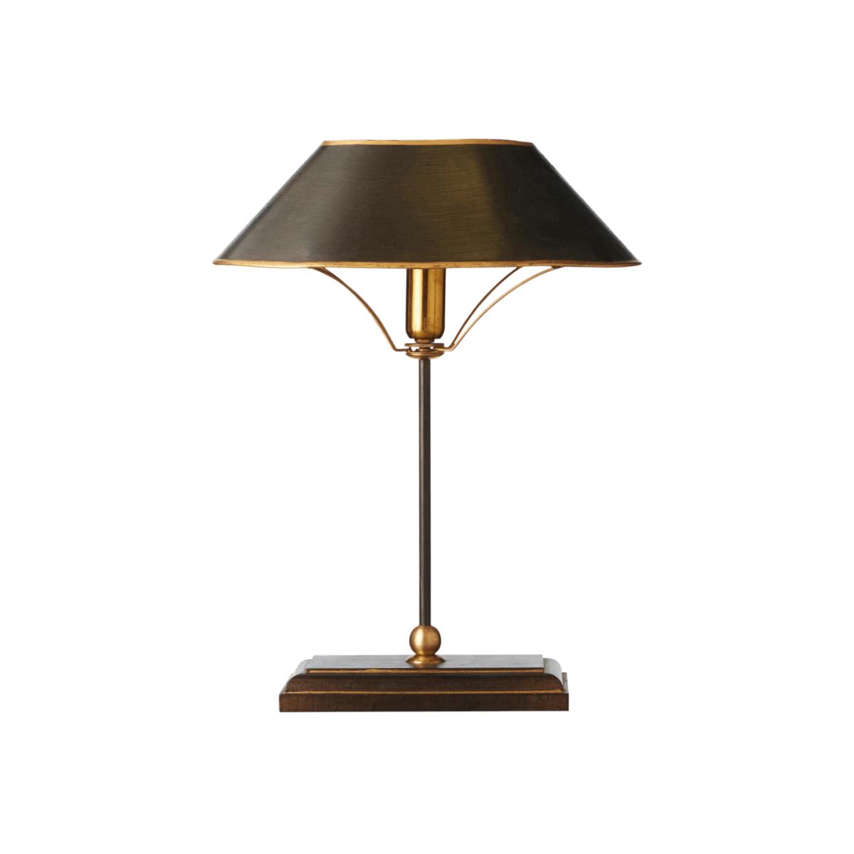 An antique-style small metal table lamp and shade, handmade from brass and iron. The petite yet elegant stature of our Grisewood Lamp makes it perfect for a desk in a home study or library, or as a small bedside lamp. Available in a selection of colours.