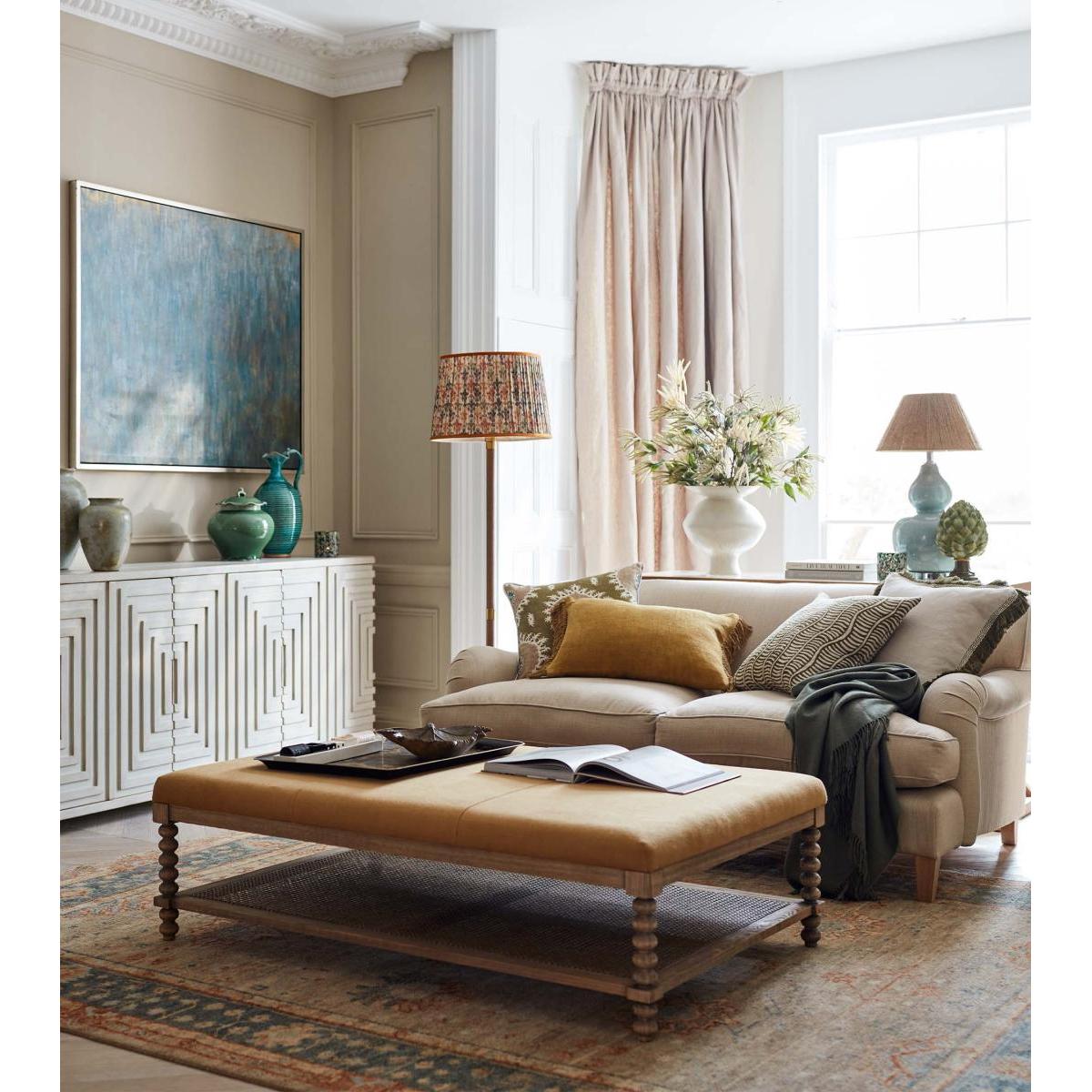 I’m a fan of this Dijon ottoman for its smart blend of turned ash legs and soft linen top, which feels both structured and welcoming. Its low, wide profile makes it ideal as a central coffee table in a relaxed living room or as extra seating in a snug snug; pair it with a woven tray for drinks or a stack of art books to ground the look. It slots effortlessly into Scandi-inspired schemes, modern country or coastal interiors, thanks to its neutral tones and light wood. For styling, layer a jute rug underneath to pick up the under-shelf’s weave, add a couple of leather-bound volumes and a small plant for height. It also doubles as a handy ottoman by simply swapping the tray for a plump velvet cushion.