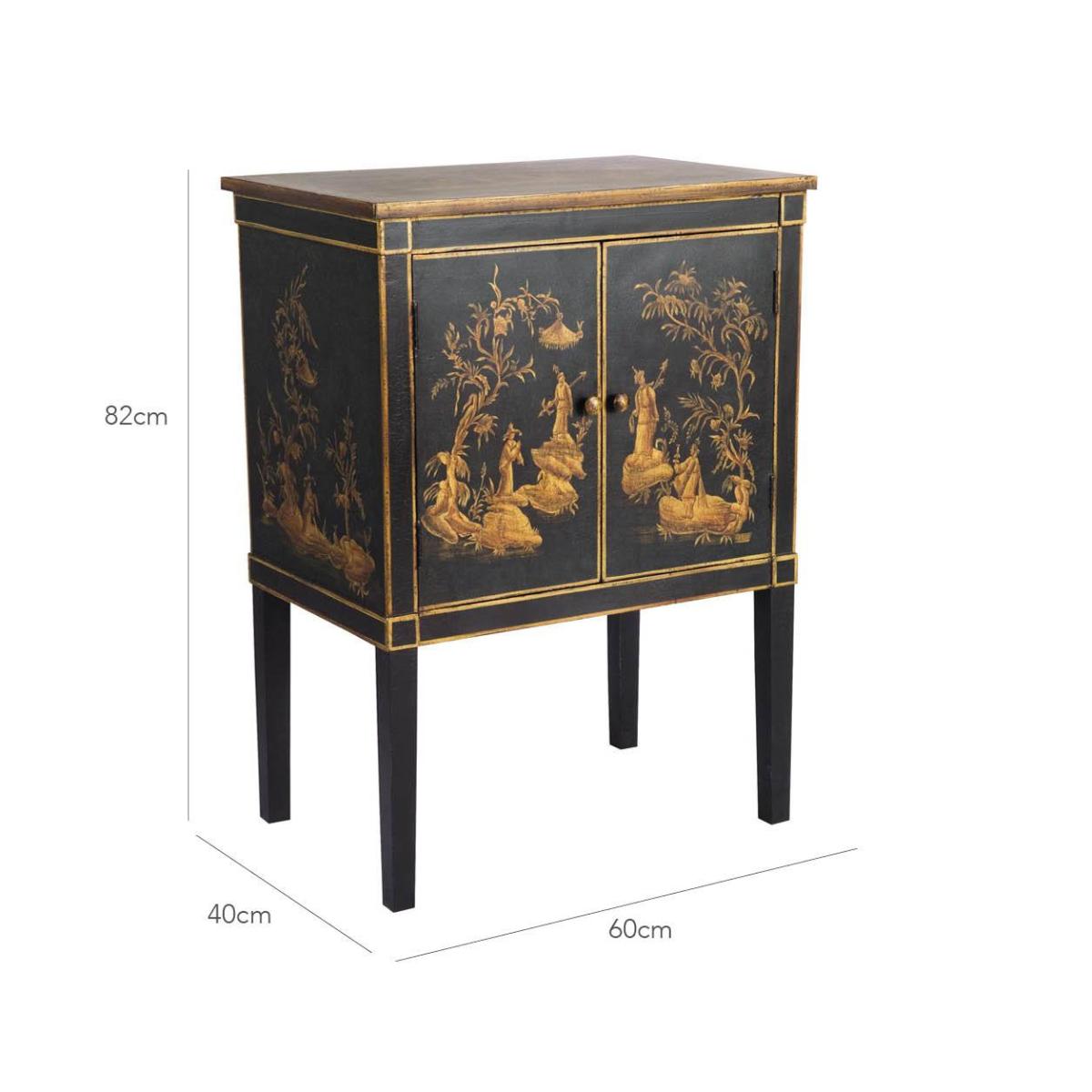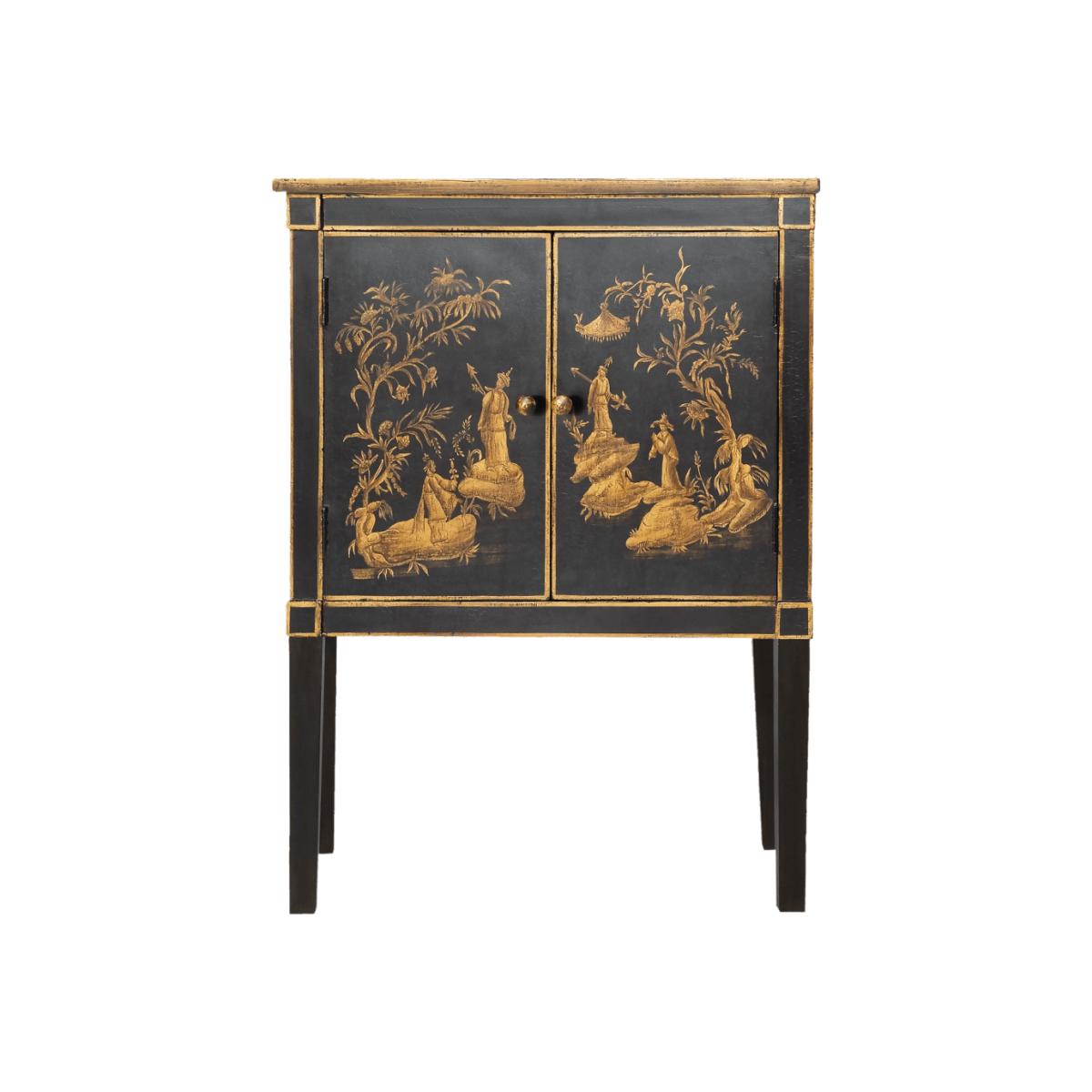 This small cabinet, with its hand-painted chinoiserie design, is perfect as a bedside table. Immaculate detailing gives this compact piece of storage the appearance of an antique, making it perfect for both dramatic and muted schemes.