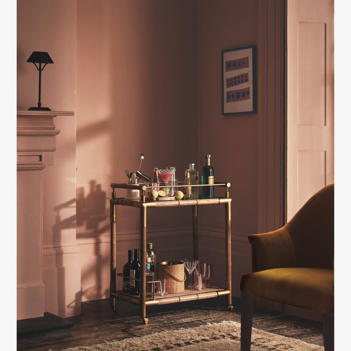 I love this OKA trolley because of its sleek, timeless design that effortlessly combines function with style. It works particularly well in both traditional and contemporary interiors, adding a touch of elegance to living rooms, dining areas, or even larger kitchens. For styling tips, consider grouping glassware and bottles to create an inviting bar aesthetic, or use the lower shelves for decorative touches like boxes or fresh towels for a more versatile look. Its natural finish makes it easy to incorporate into neutral palettes, but it also pairs beautifully with metallic accents for a bit of added glamour. Overall, this trolley is both practical and stylish-an easy way to update your space and keep your drinks and accessories organised.