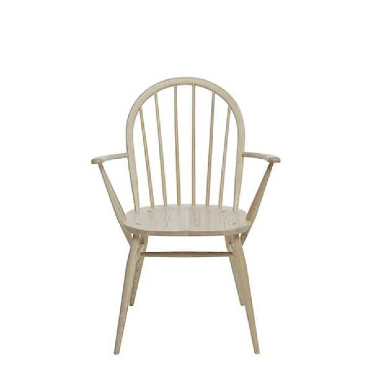 This Ercol Windsor dining chair with arms is another classic piece of furniture taken straight out of goldilocks and the three bears. Crafted from solid ash, the. Features turned legs and spindle details, and its armrests provide you with additional comfort at the dinner table. Available in wood or painted finish.
