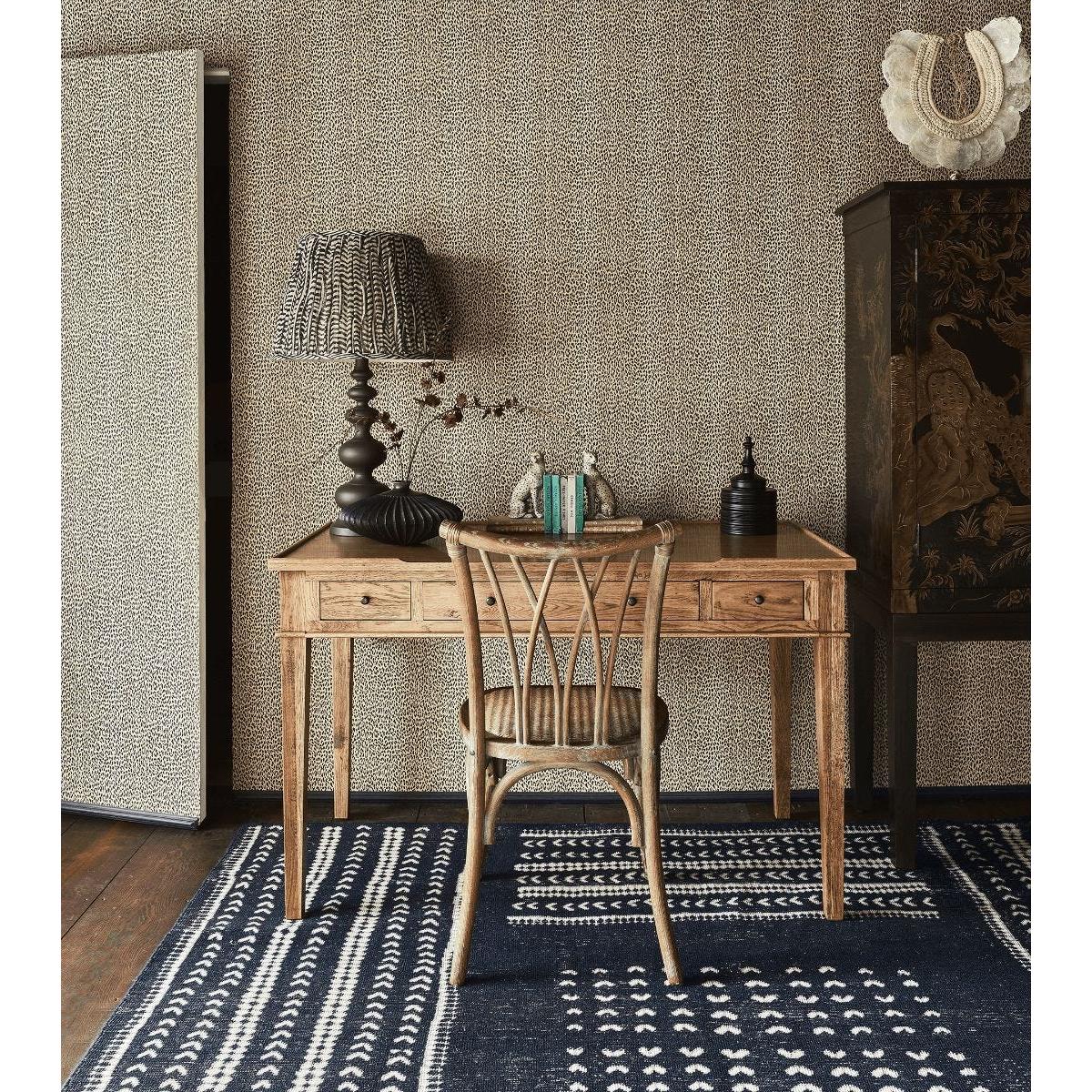 A dark base can help to make furniture sing; the Hegaldia Rug does just that with a framing pattern that offers the perfect spot for a central coffee table. It is hand-knotted with a pile surface that makes it incredibly durable and delightfully soft underfoot. The mud cloth textile is from Africa, traditionally made by the women of Mali with an age-old process that uses local flora and fauna to hand-dye the yarn. The pattern is created with a form of tie-dye that sees the rug tied up with strips of raffia before the indigo colour is applied, leaving exposed sections that result in an abstract design.