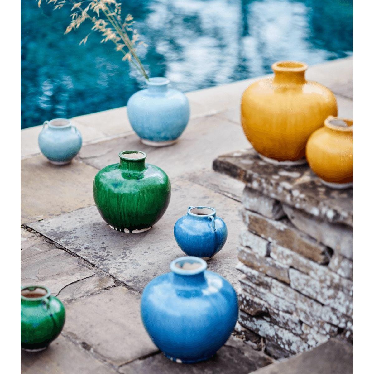 The pleasing round form of our Hongwu Pot is inspired by Ancient Chinese pottery. Named after the emperor of the Ming dynasty under whose reign the first kiln was established, the Hongwu has a definite timeless quality about it. Its bold and bright glaze is hand-dipped for a distinctive finish and corroded for a more matte effect. The inside appears textured, and is the perfect place for displaying a selection of faux stems. No piece is the same.
