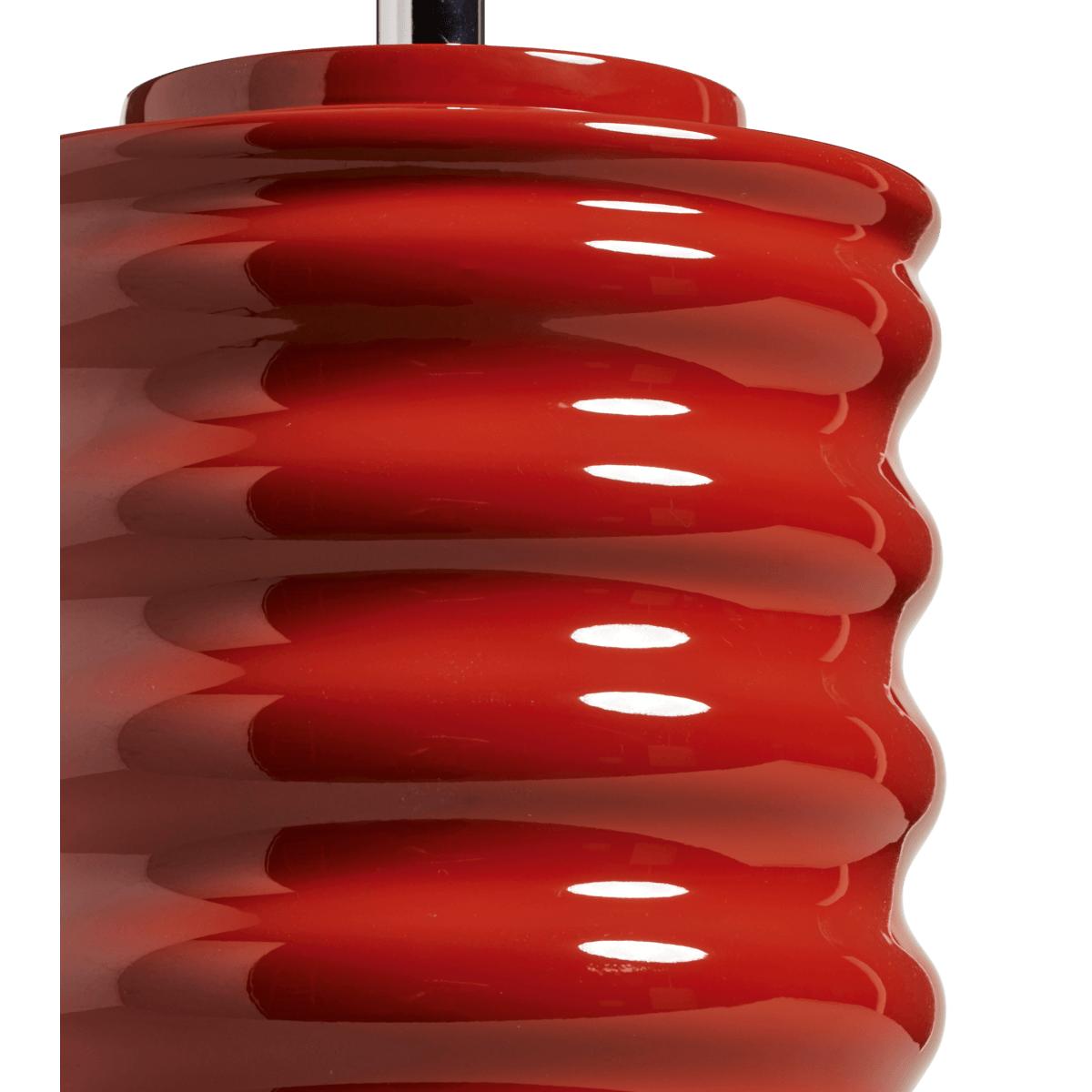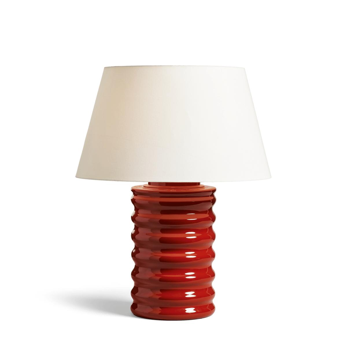 This high-shine ceramic lamp base will set the tone in its brilliantly vibrant red madder colourway. The wave-like shape creates ledges for the light to bounce from which amplifies its striking appearance. The lamp is handmade and painted with a lacquer which gives it that glossy finish.