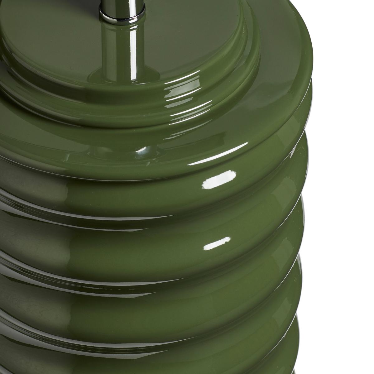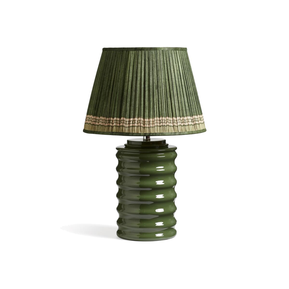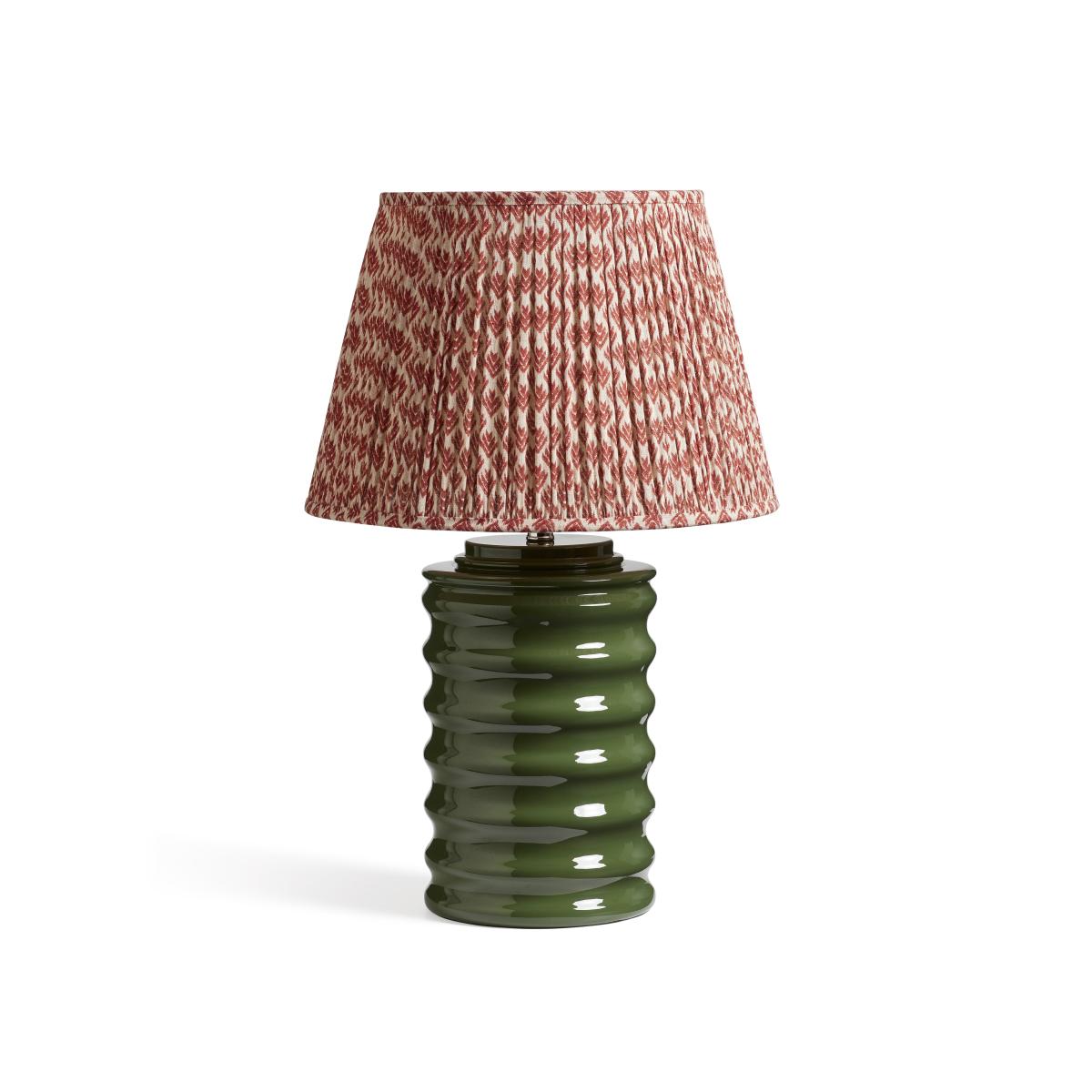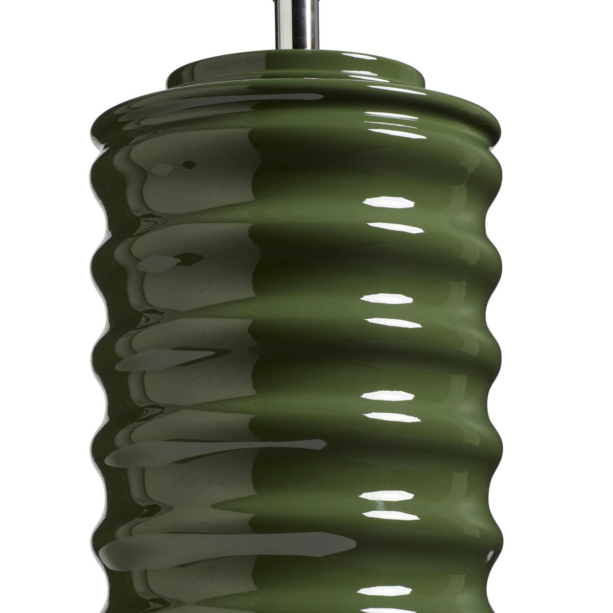 This high-shine ceramic lamp base will set the tone in its brilliantly vibrant Spruce green colourway. The wave-like shape creates ledges for the light to bounce from which amplifies its striking appearance. The lamp is handmade and painted with a lacquer which gives it that glossy finish.