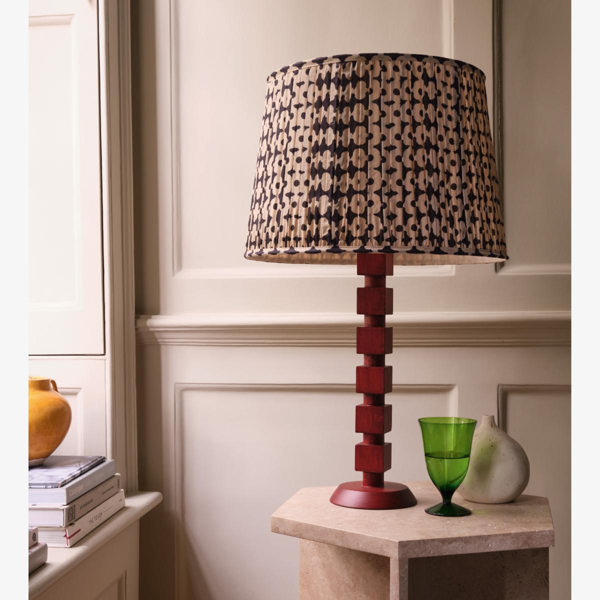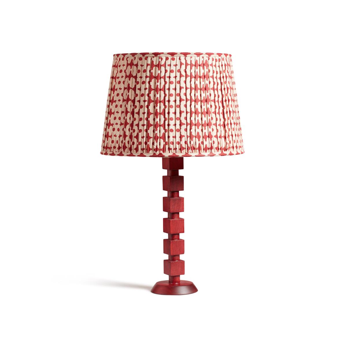 From table to lamp, we've reinvented our bobbin-inspired Huxley design so that you can get the glow. Originally, while agonising over the size of the square forms, our designer began stacking her son's building blocks for inspiration - Huxley has since lent his name to the distinctive collection. The mango wood base is hand carved and hand finished in a rich red colour and then rubbed for a tonal effect that reveals its depth, resulting in anything but a flat finish.