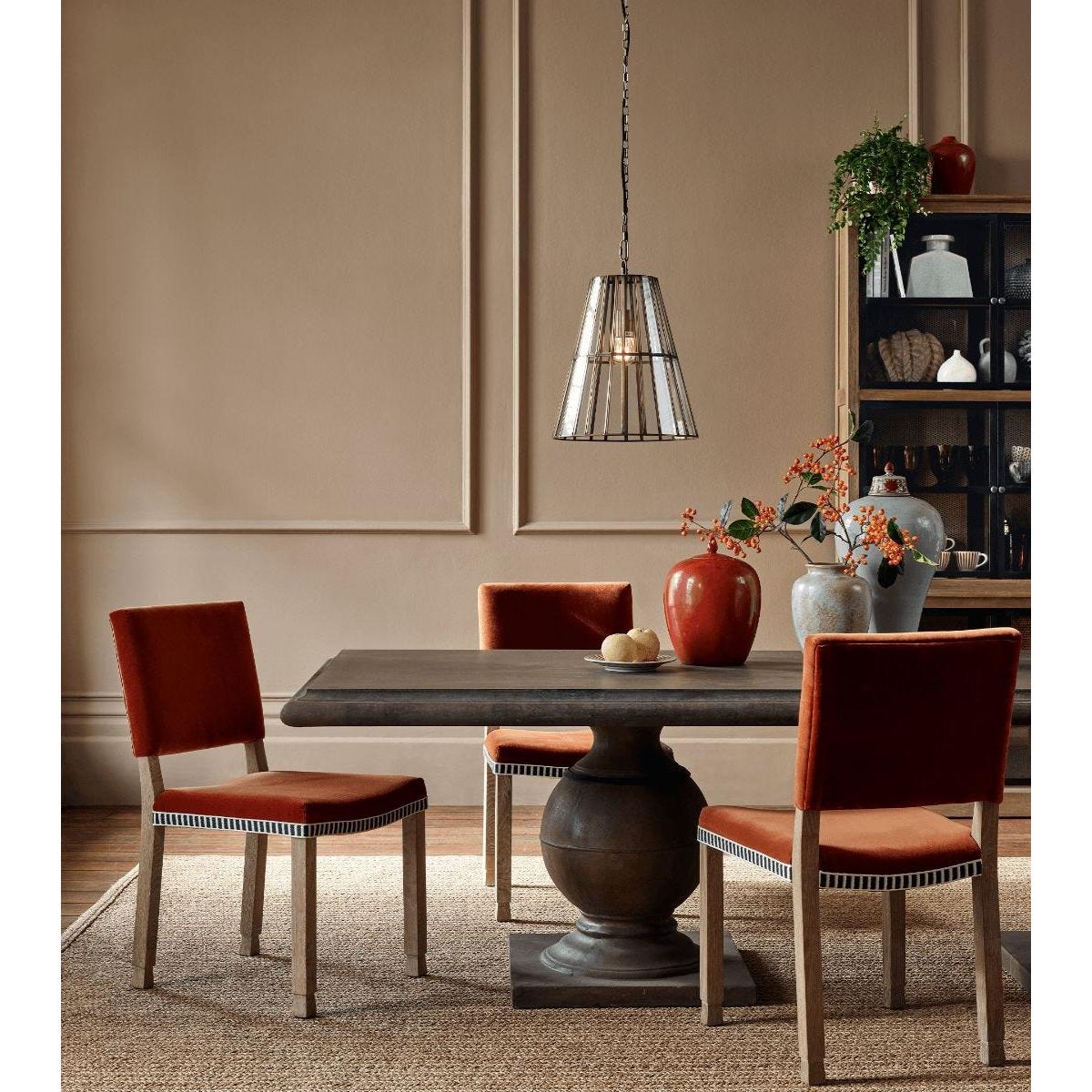 Whether the sun is shining or not, our Icarus Pendant Lamp will look striking hanging from the ceiling. Its steel structure is welded together by hand to enclose glass panels that will intensify the light when switched on. The metal is aged for an antique effect and a chain detail holds it up. Due to the manual process, each piece has individual characteristics and authentic markings that makes it unique.