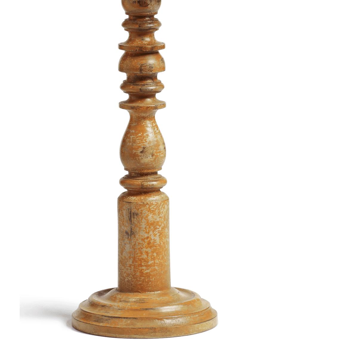 The Idalia’s hand-turned and carved wooden base has a traditional feel, with a hand-painted distressed finish to give it an antique appearance. It’s made from European beech wood, and each piece will have individual characteristics due to the artisanal process.