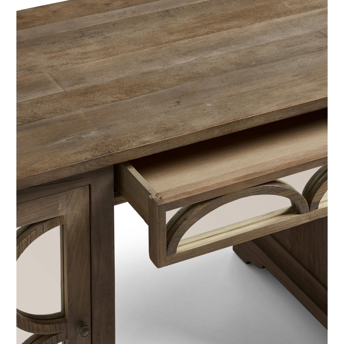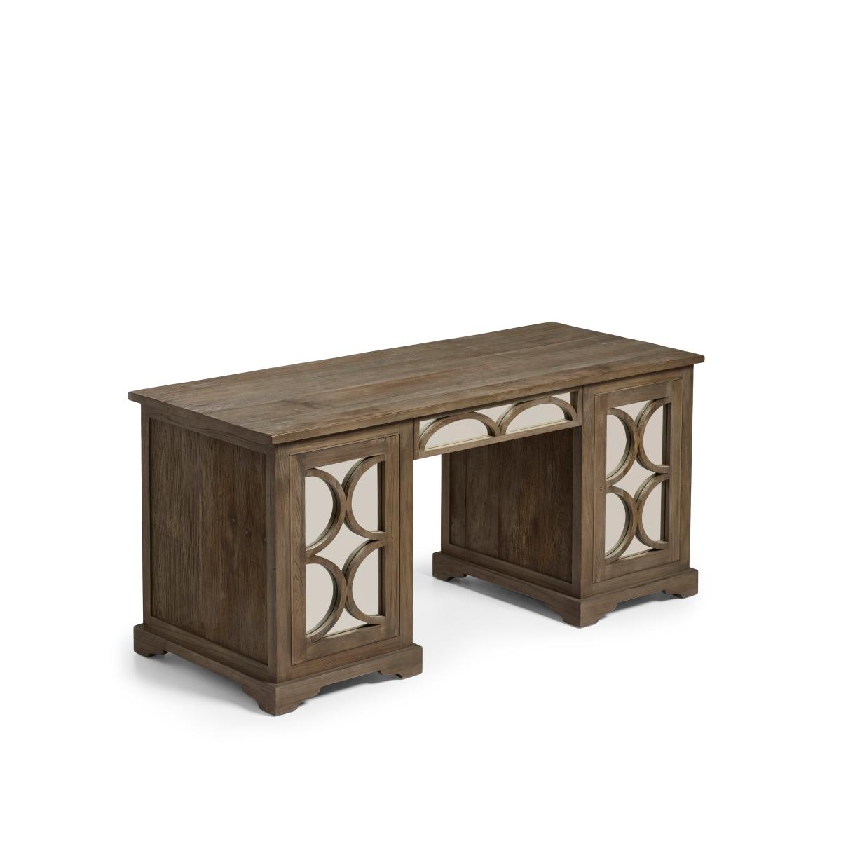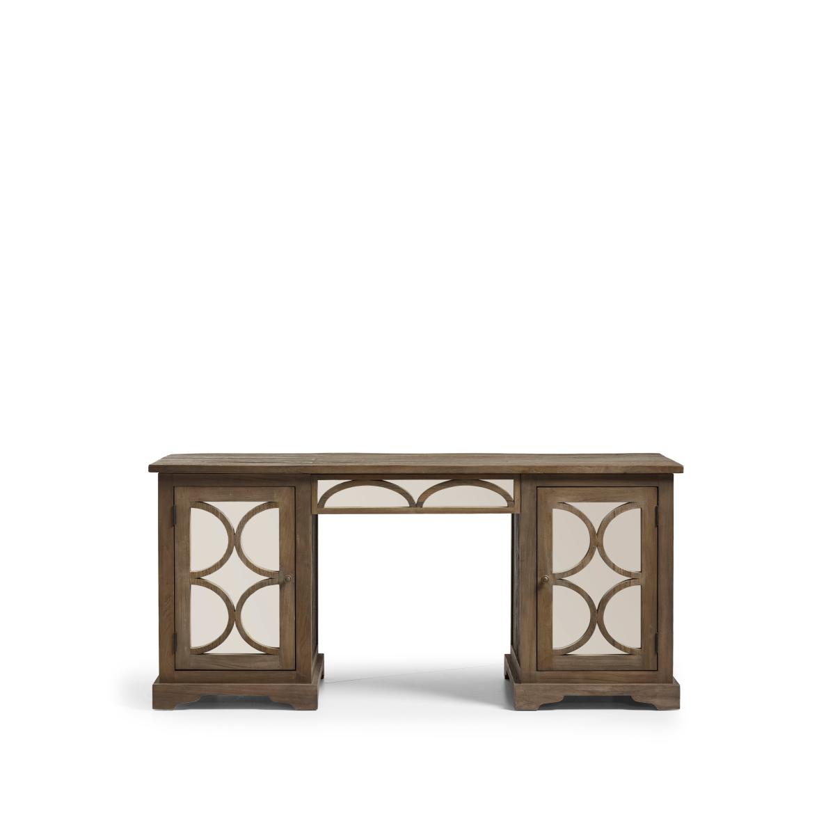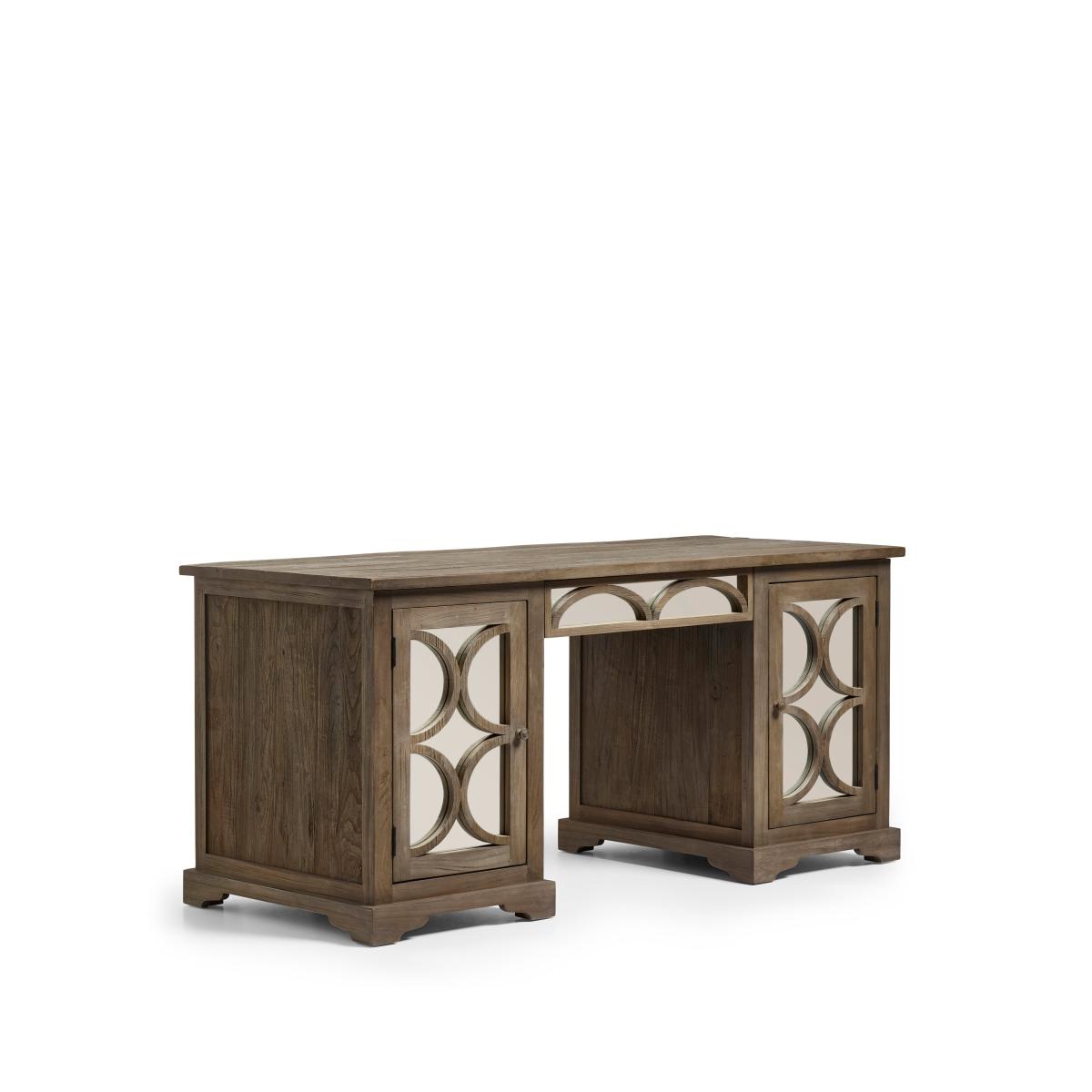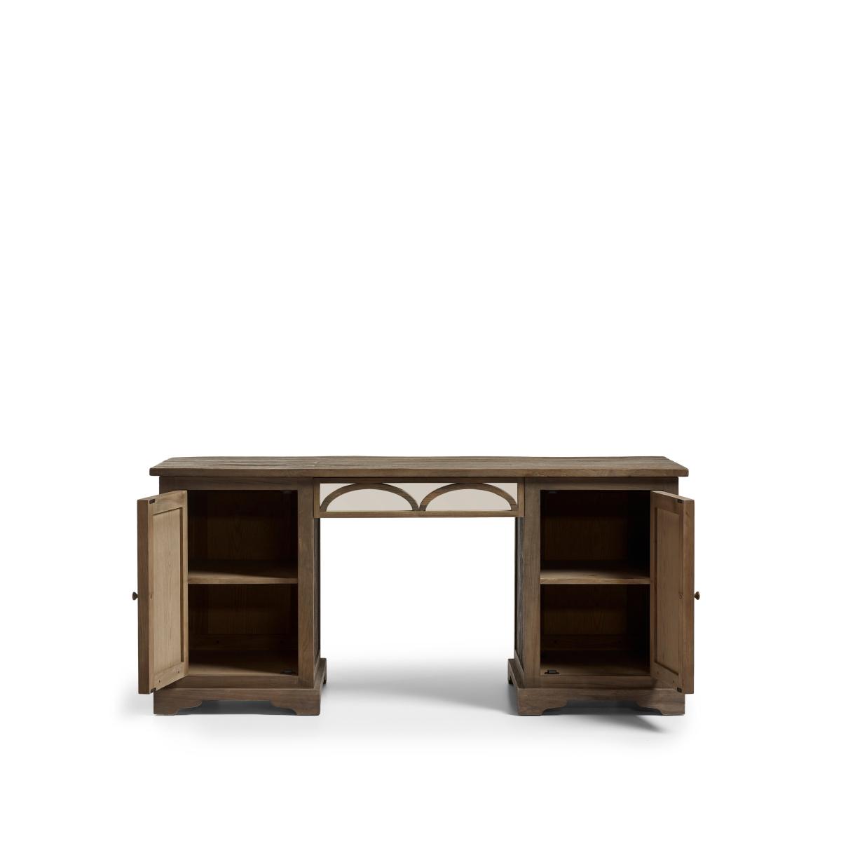 Inspired by the timeless design of a classic partners desk, the Inigo Desk is crafted from characterful recycled elm and features mirrored glass panels that reflect light beautifully throughout your space. Blending heritage style with modern functionality, it pairs seamlessly with the sideboard from the same collection and makes a striking centrepiece for a home office or dressing room. Two spacious cabinets offer ample hidden storage, while the open central section comfortably accommodates a chair. True to its partners desk roots, it’s finished identically on both sides – making it just as at home in the centre of a room as it is against a wall.