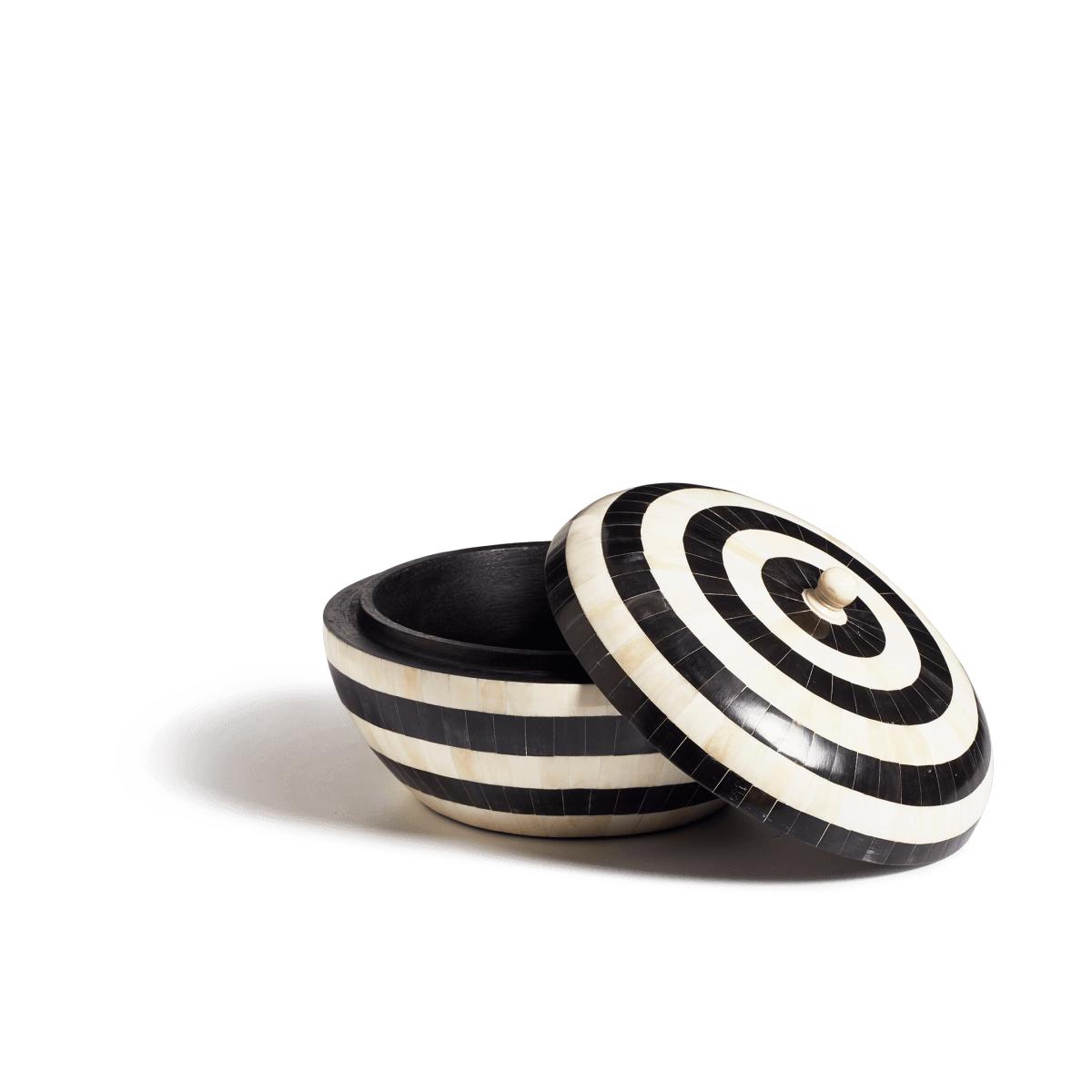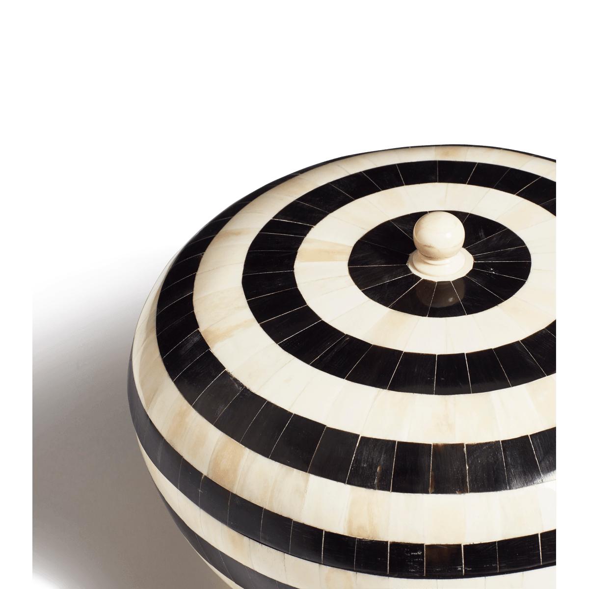 OKA, Java Bone Lidded Pot - Black/Cream, Pots and Urns, Bone/MDF Wood