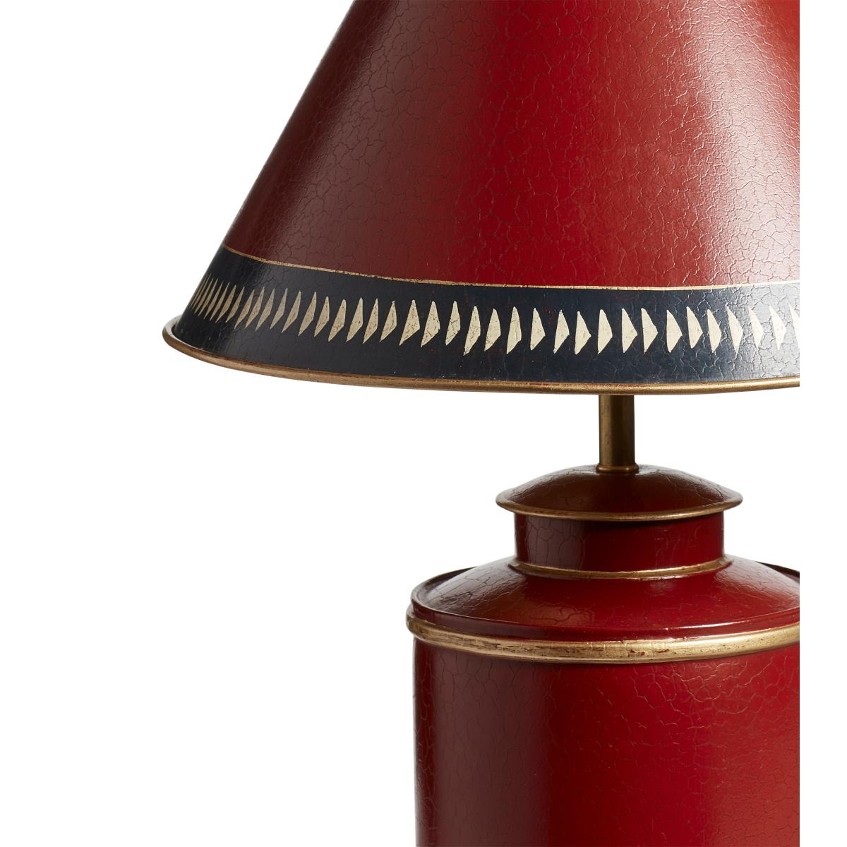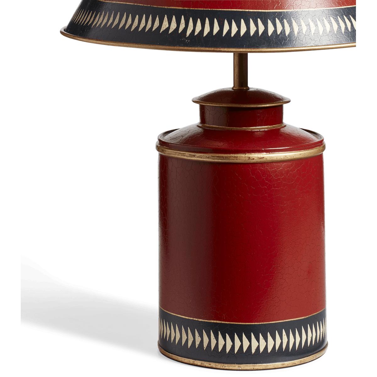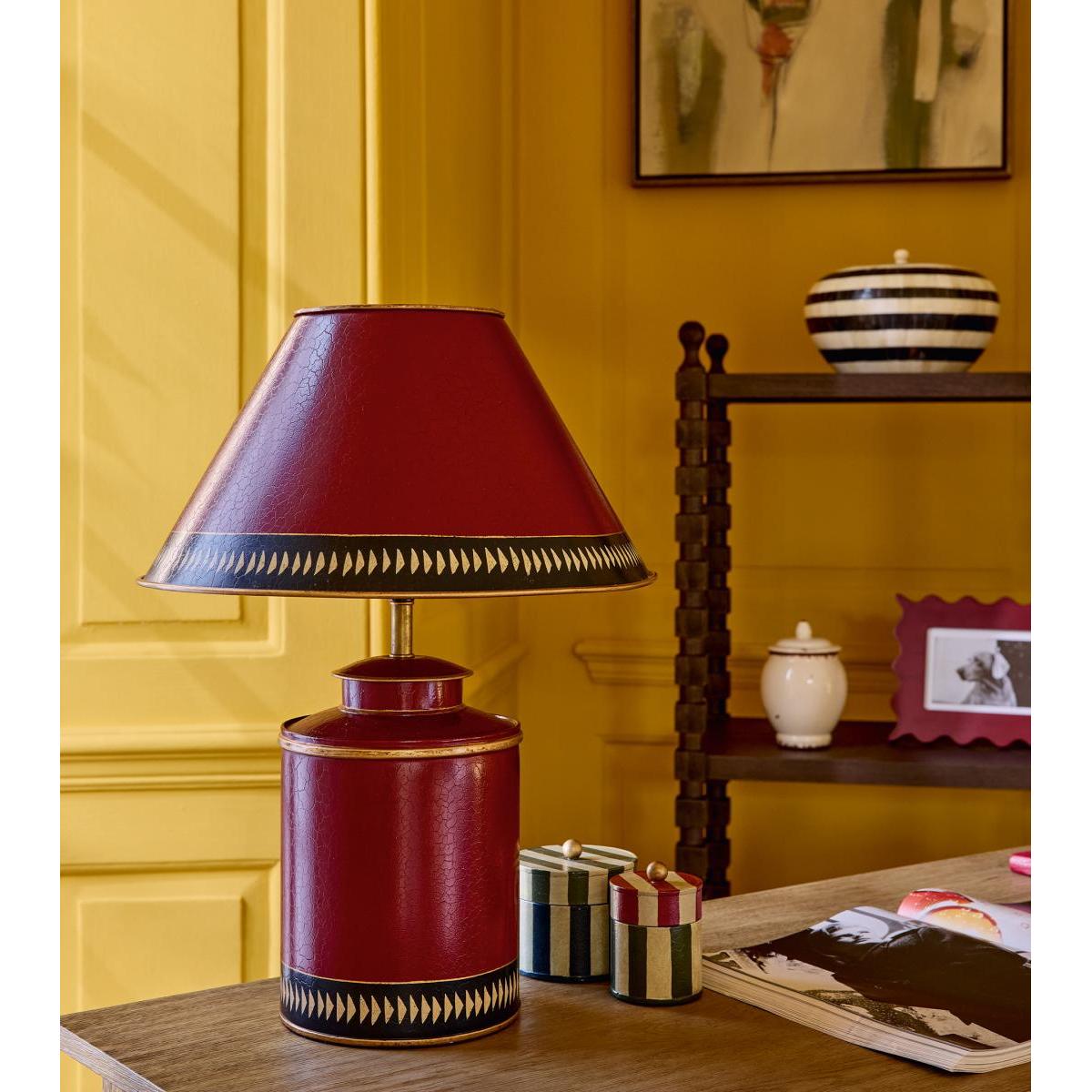 The Kolmio Table Lamp is a striking piece, handmade from iron and meticulously hand-painted in red with a repeating arrow-pattern border and bronzed edges. The shade is hand formed and hand welded, combining vintage style with Regency-era gold touches and bold, rich colours. The details are hand painted by a small group of talented artisans led by a master painter who has honed their craft over many generations to produce these beautifully layered pieces. The colour is created in a lengthy process through many layers of paint; the craftspeople wait for each layer to dry before applying the next, and finally adding a crackled effect for antique style. Due to the artisanal techniques used, each piece will have individual characteristics that add to their charm. This lamp would look beautiful tucked away in a reading corner, adding interest and colour into the darkest corners of your home or equally, front and centre as a focus of your desk or dressing table for all to see.