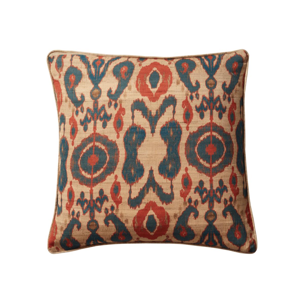 Our Koyari Cushion Cover combines the honey tones of wild Tussah silk with the classic muted colours of a traditional ikat print. With paisley motifs and circular patterns, this design would work well in a country house.