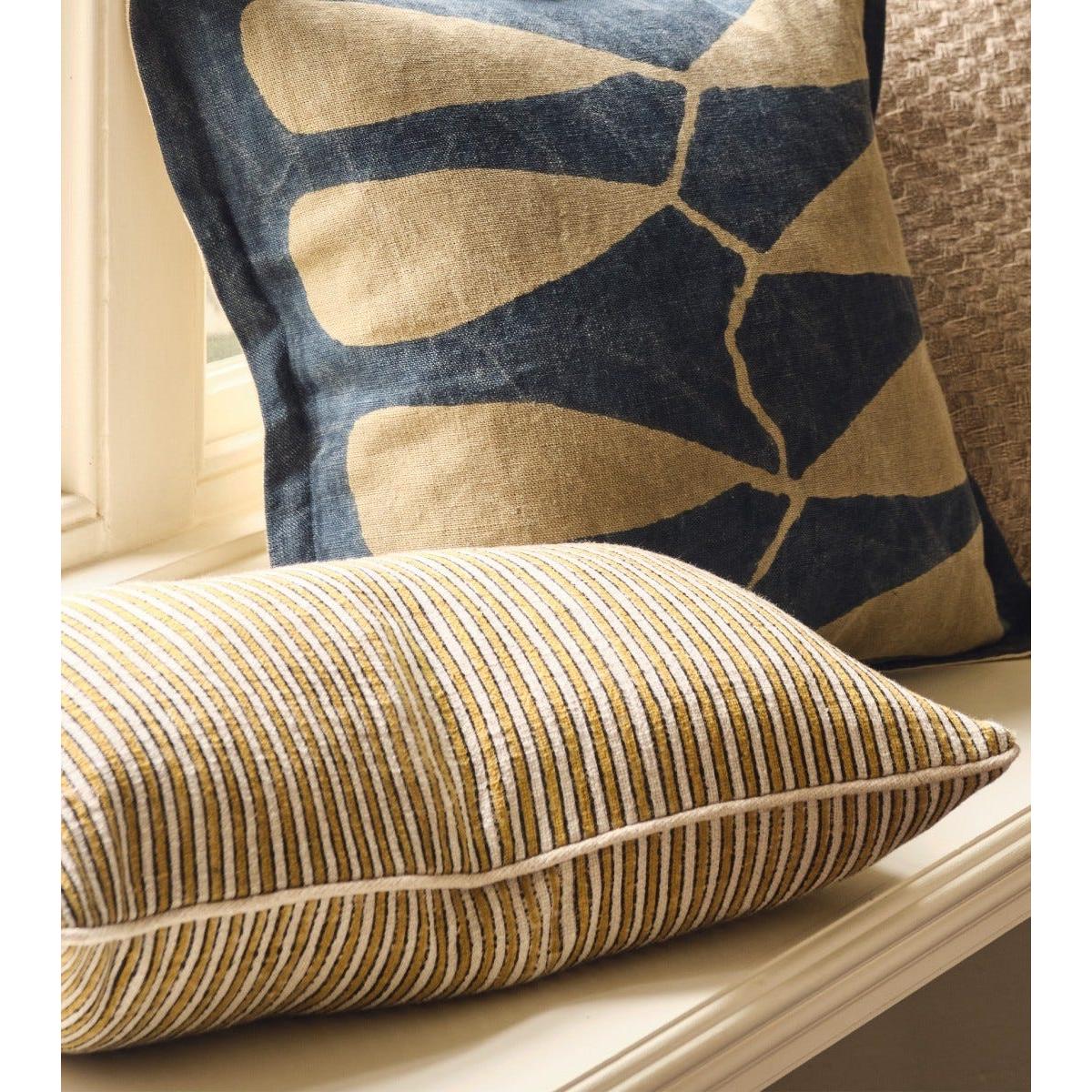 Our rectangular Krishna Stripe Cushion Cover features a fine stripe pattern that pairs well with the tile-inspired pattern of the square Krishna Cushion Cover. The design is hand-block printed onto a heavy cotton slub base which lends the cushion a textural quality. It is finished with plain piping around its edge.