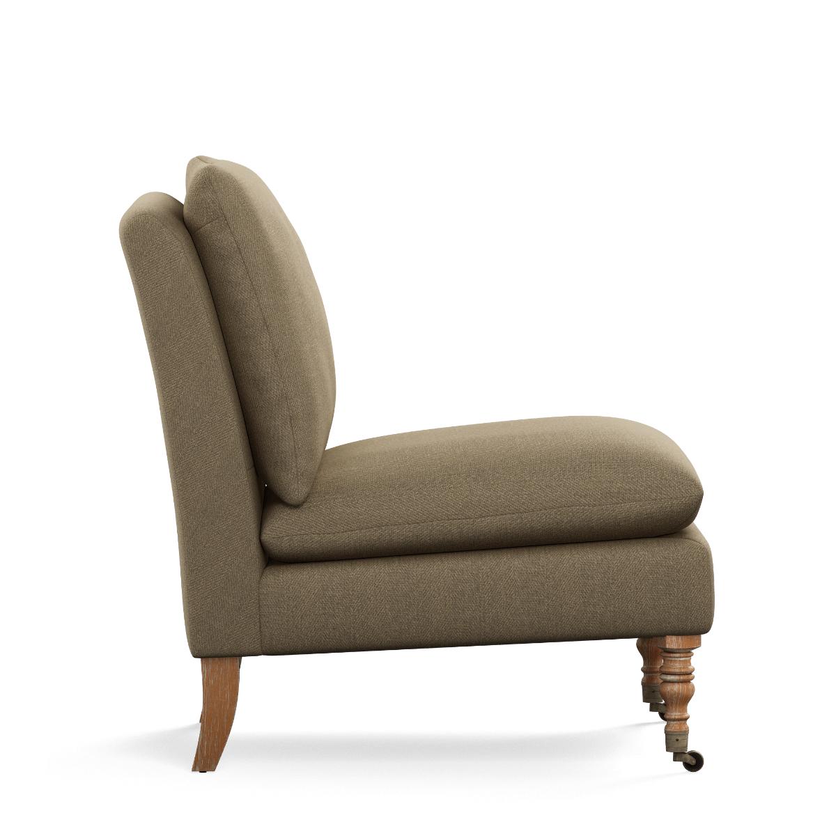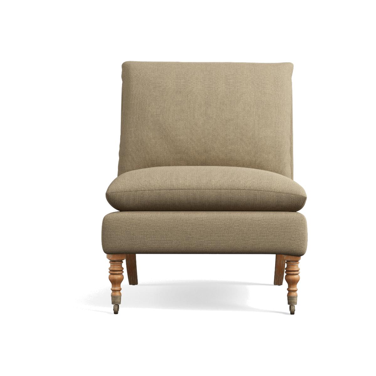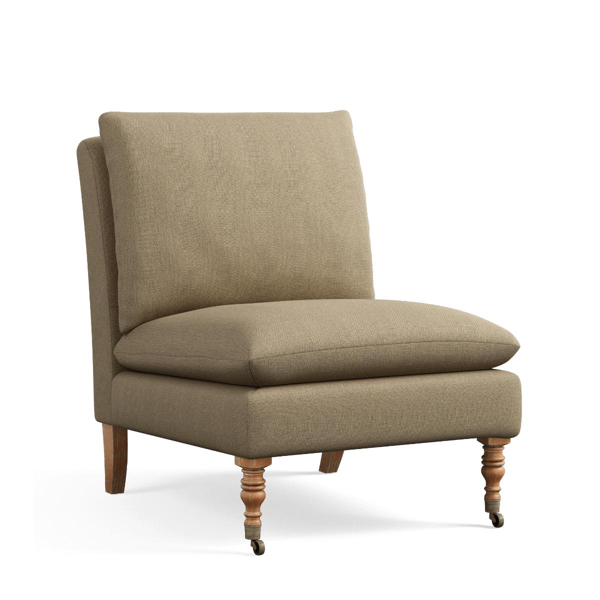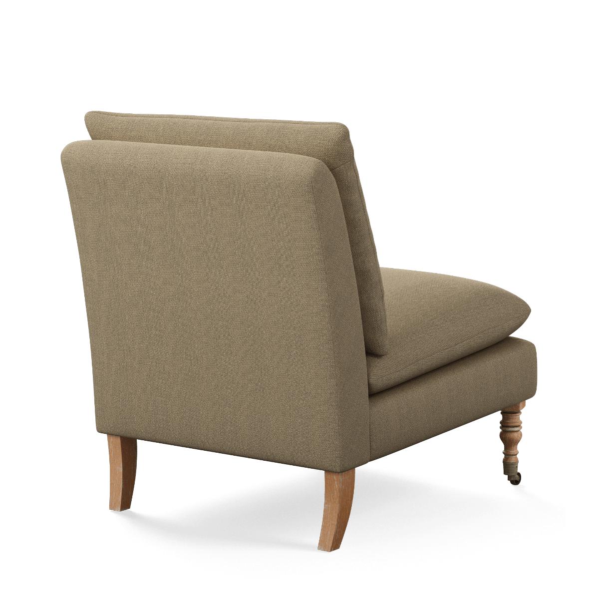 The Apadana is the perfect occasional chair; it can be used instead of an armchair or be styled in pairs to form a small sofa. Joining the range is this super-sized version in a wonderfully neutral wild oat linen. Brass castors and turned legs elevate its minimal design while a foam-filled seat and back cushions ensure exceptional comfort. The legs are removable and will be attached upon delivery. Thanks to a classic design and versatile colour, it will complement schemes both modern and traditional.