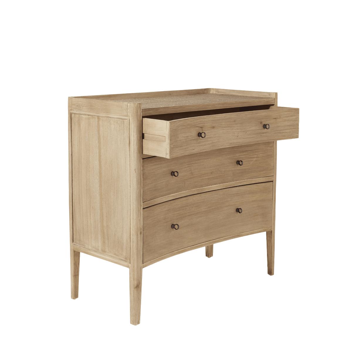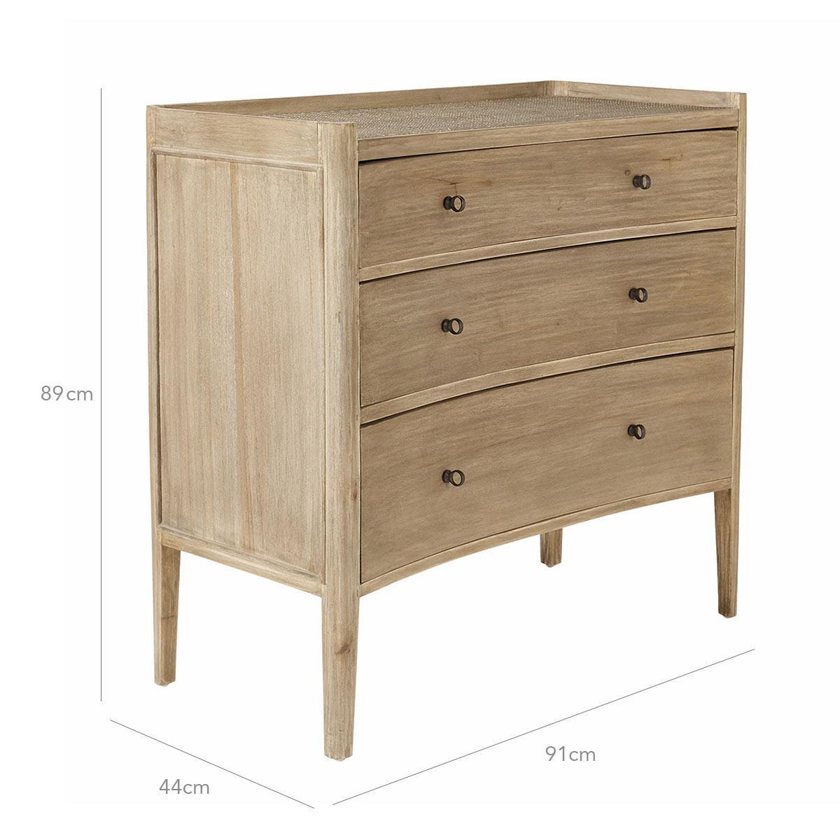 Named after the islands of Balabac in the Philippines, this unusual design – with its gently concave drawer fronts – brings global appeal to your scheme. Its minimal profile and natural warm-wood finish is complemented by a raised rattan top, which adds texture.