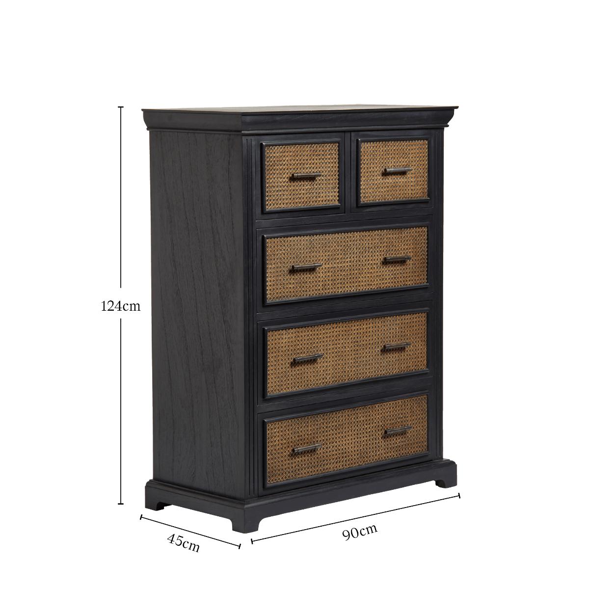 Nodding to the traditional style of the South Asian countries where you'll find the wood it's crafted from, this large chest of drawers features a smart blend of painted bayur wood and rattan. Housing two smaller drawers at the top and three large drawers below, it makes for a striking storage option in any room.