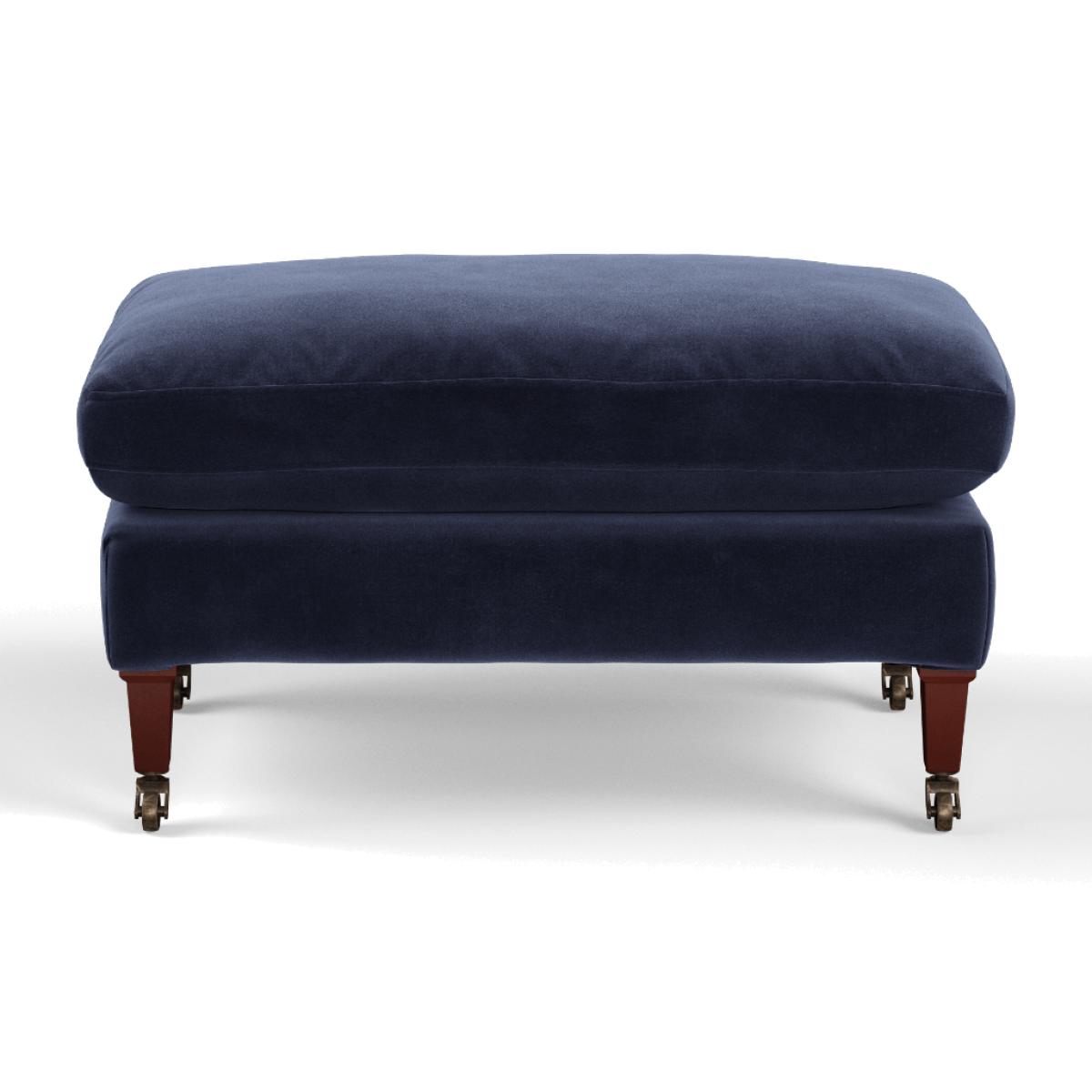 OKA, Large Coleridge Footstool with Velvet Fixed Cover - Sapphire, Footstools, Velvet, Plain
