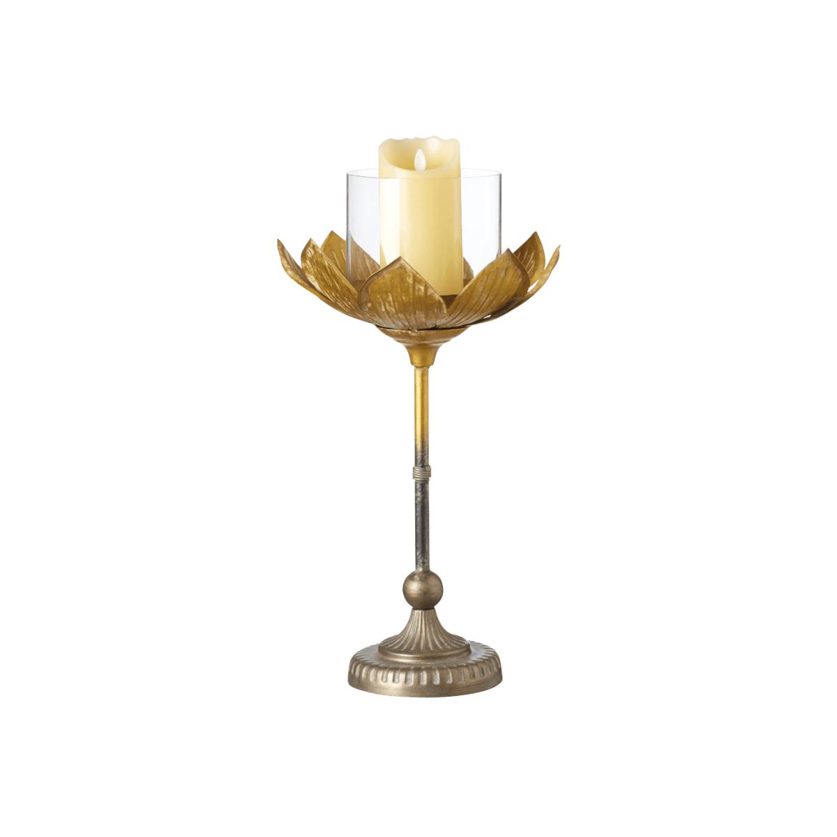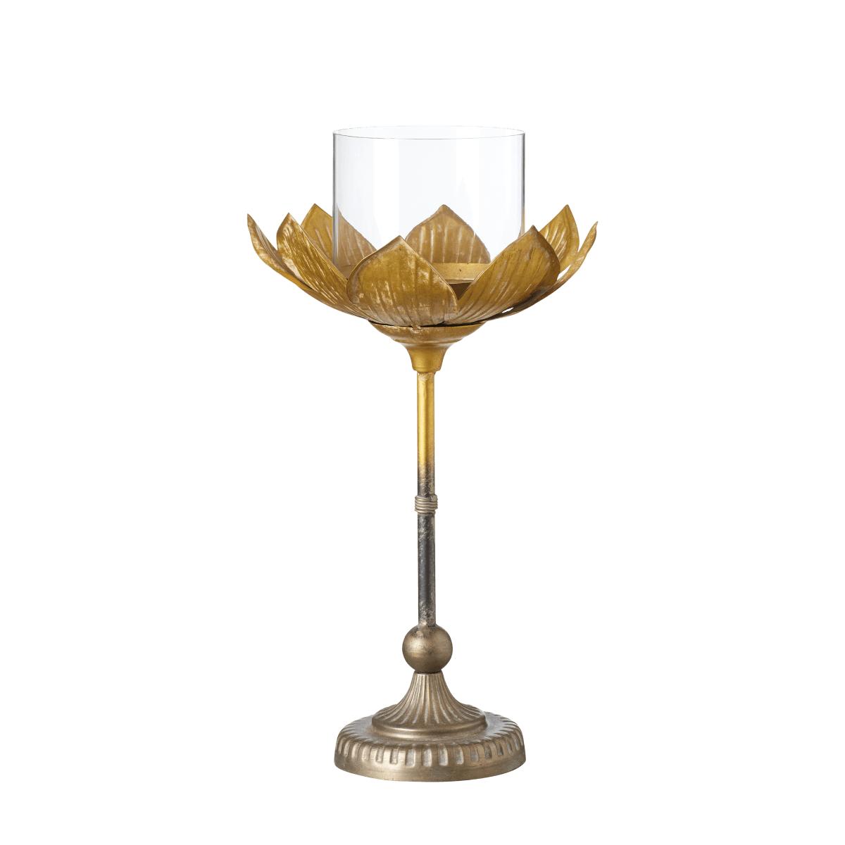 OKA, Large Lotus Candle Holder - Gold, Candle Holders, Glass/Metal