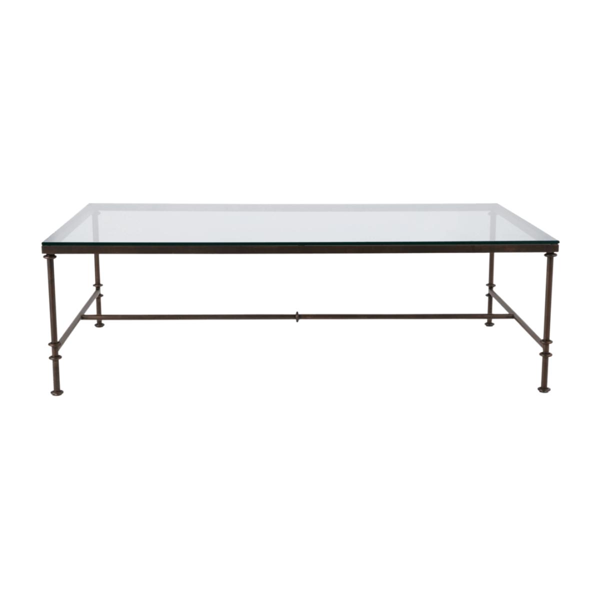 A generously sized coffee table that by virtue of its glass top and slender metal frame sits lightly in a room and will fit into any style of interior.