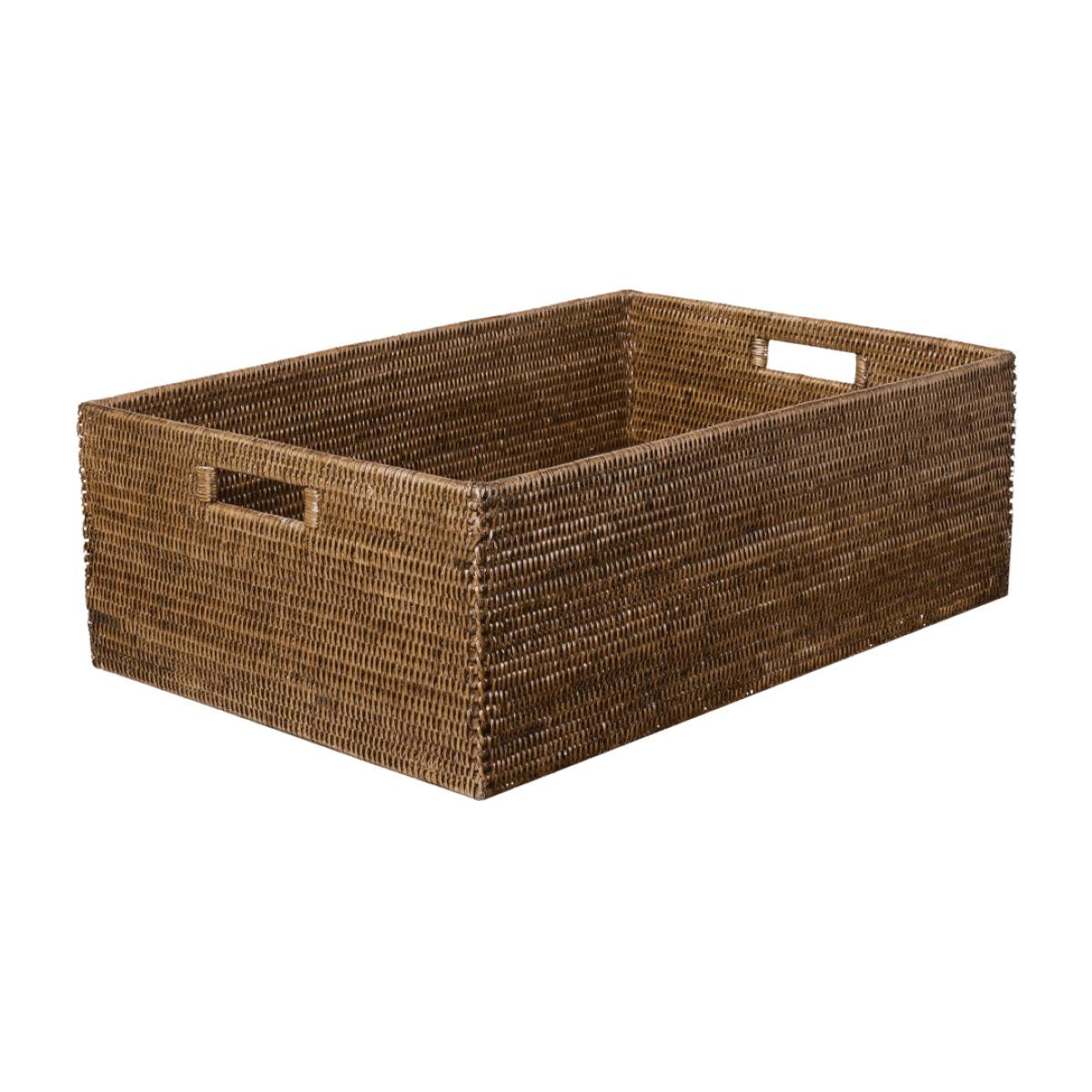 Our range of Delta Rattan boxes are both handsome and incredibly robust, and will stand up to years of use. They are designed for storage and have inset handles making them easy to move around. This large version is amply sized to hold cans or bottles, or for laundry, sheets or even boots and shoes.