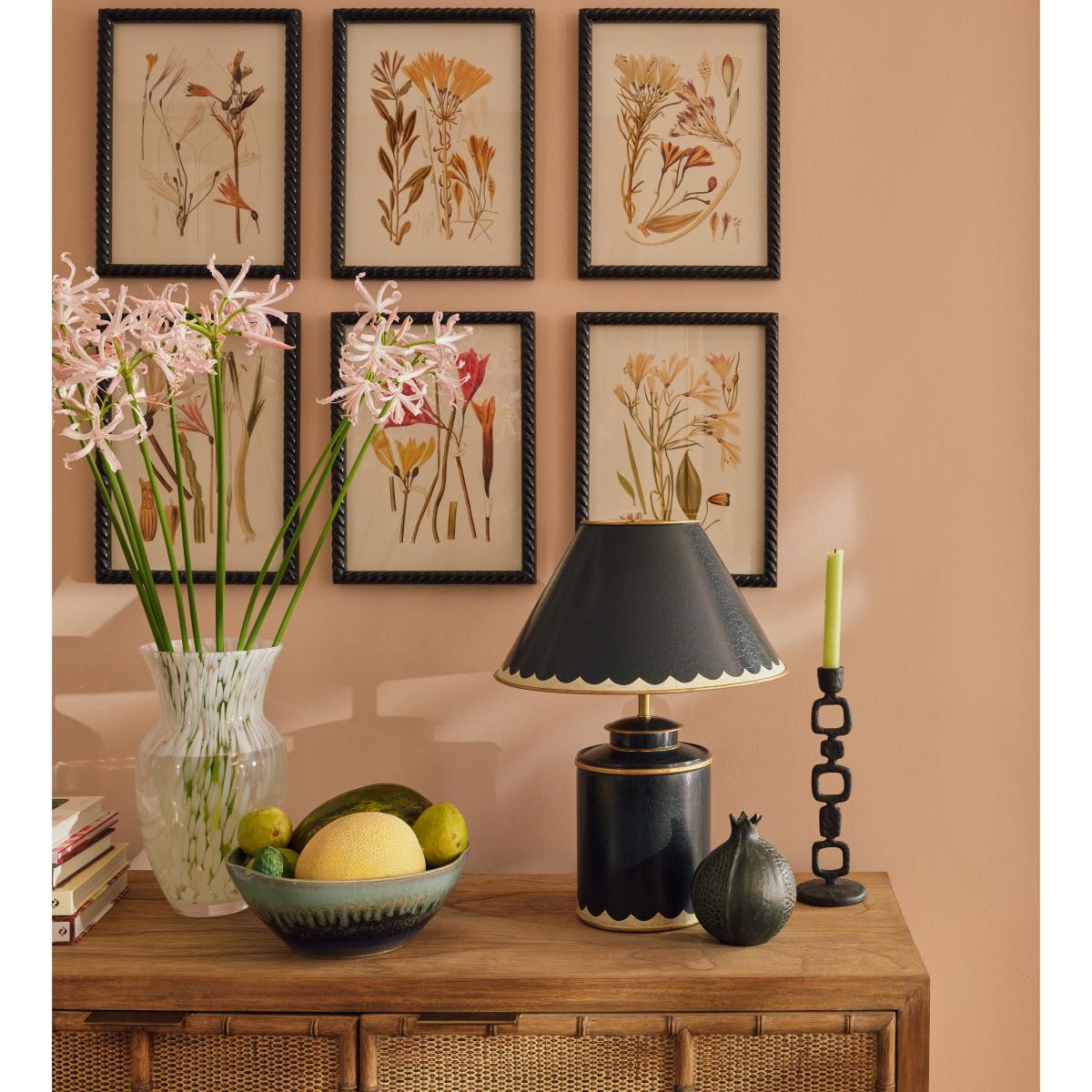 The Lastura Table Lamp is a striking piece, handmade from iron and finished in deep blue with a meticulously hand-painted scalloped border and bronzed edges. The shade is hand formed and hand welded, combining and the colour has a crackled effect for antique style. The details are hand painted by a small group of talented artisans led by a master painter who has honed theircraft over many generations to produce these beautifully layered pieces. The colour is created in a lengthy process through many layers of paint; the craftspeople wait for each layer to dry before applying the next. Due to the artisanal techniques used, each piece will have individual characteristics that add to their charm. This lamp would look beautiful tucked away in a reading corner, adding interest and colour into the darkest corners of your home or equally, front and centre as a focus of your desk or dressing table for all to see.