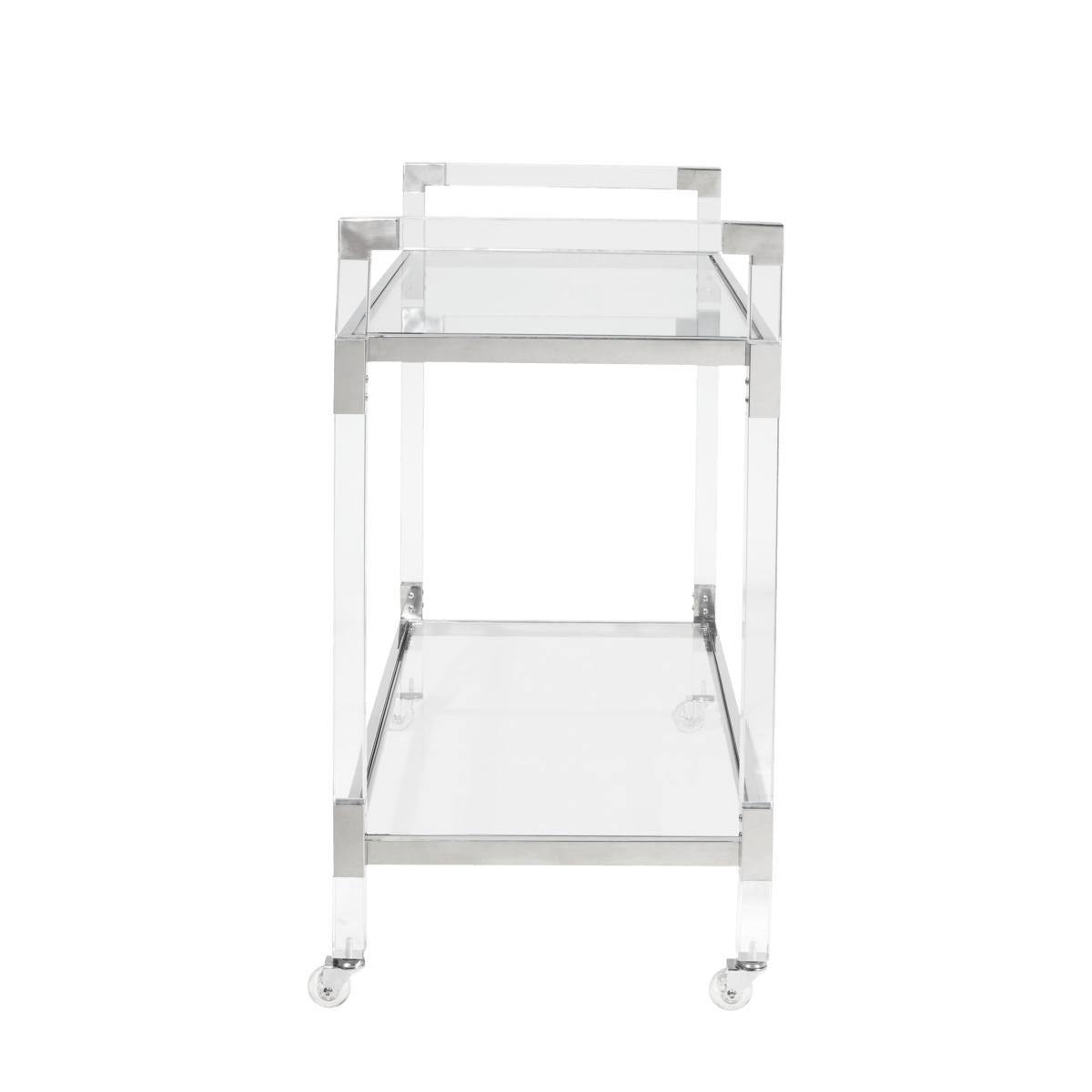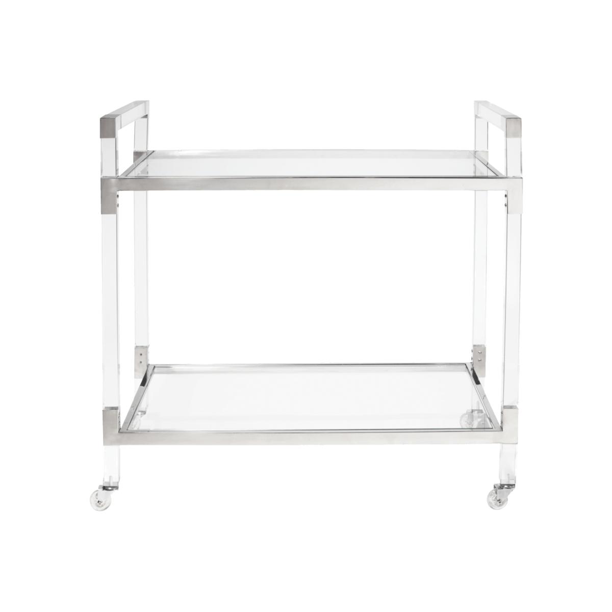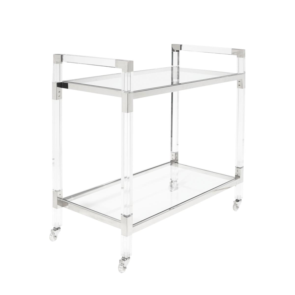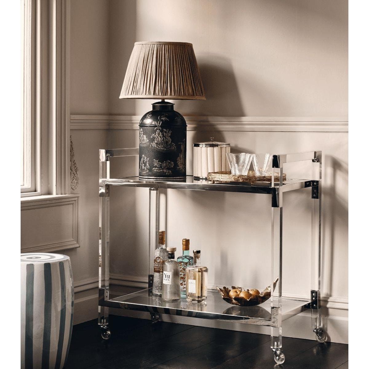If you had asked us when we first founded OKA if we would be selling a "hostess trolley", we probably would have laughed out loud. But times change, and now you can create your own bar at home with the Lenox Drinks Trolley. Crafted from acrylic and glass with a stainless steel frame, this contemporary piece of furniture also features wheels, so it can easily be moved between two entertaining spaces. With two shelves, there's plenty of room to house a selection of spirits, mixers and glassware.