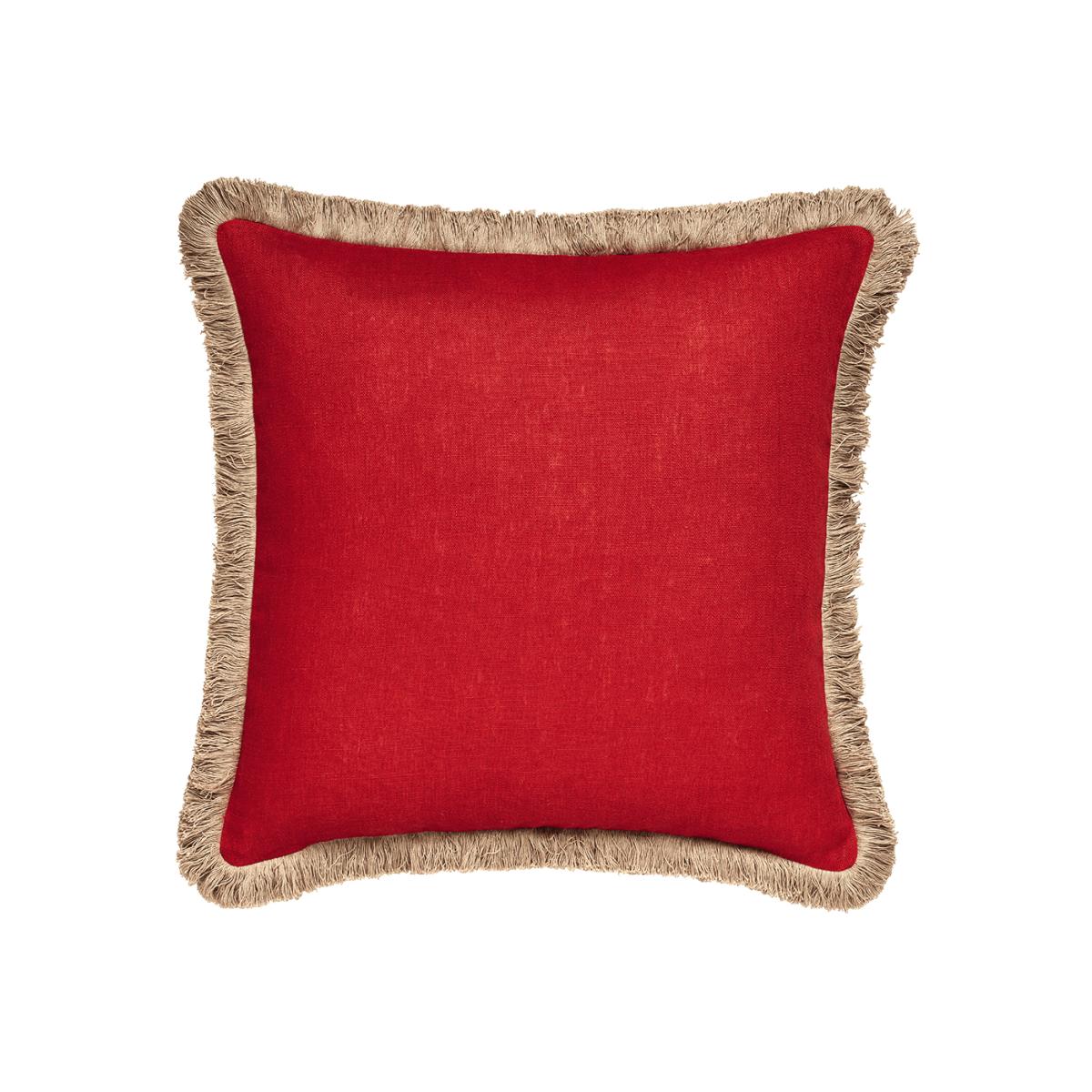 OKA, Lilias Linen Cushion Cover With Fringing - Chinese Red, Cushion Covers, Linen, Plain
