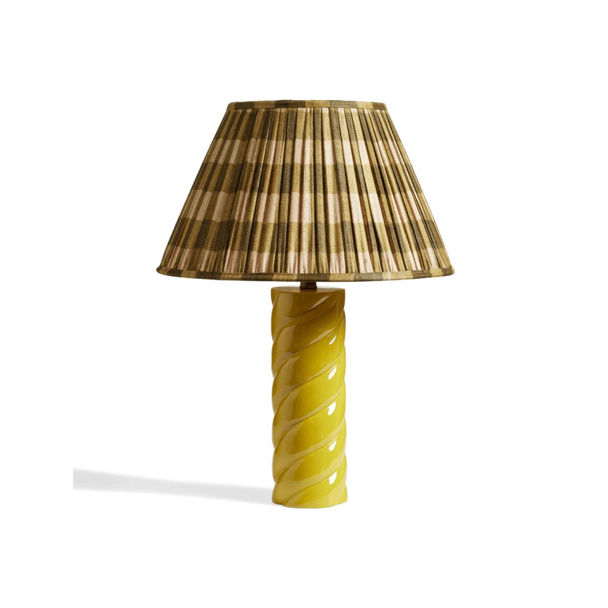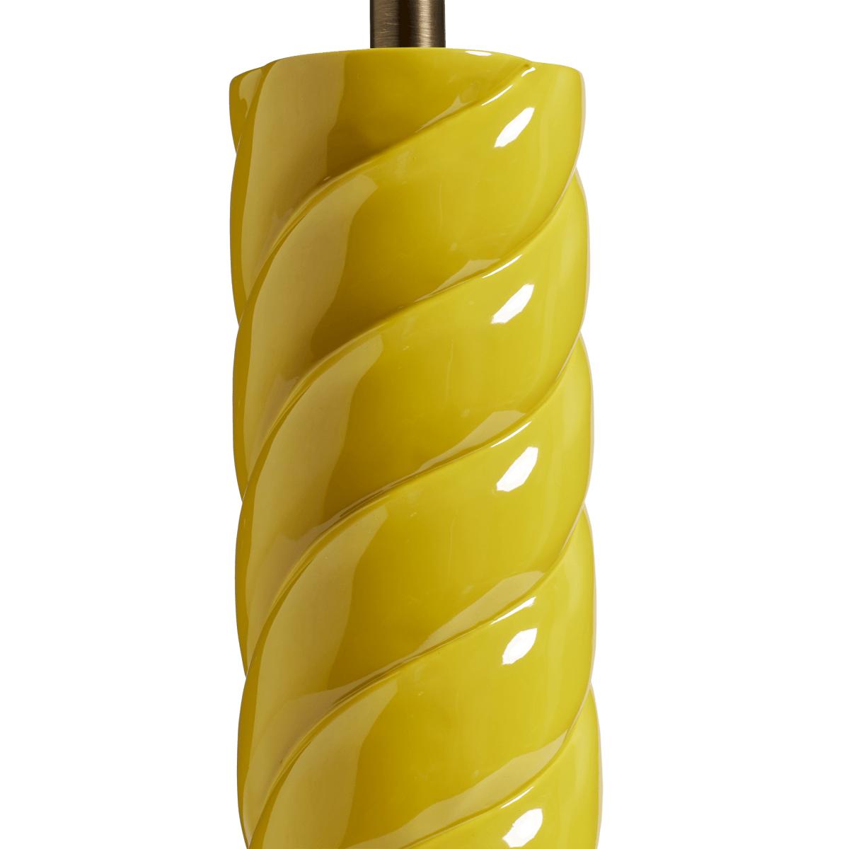 The chunky twist of our tall Lilo Table Lamp Base is incredibly pleasing to the eye. The piece is moulded into shape and painted a zesty yellow with a high shine lacquer so that the shape really stands out. The hardware is finished in brushed brass.