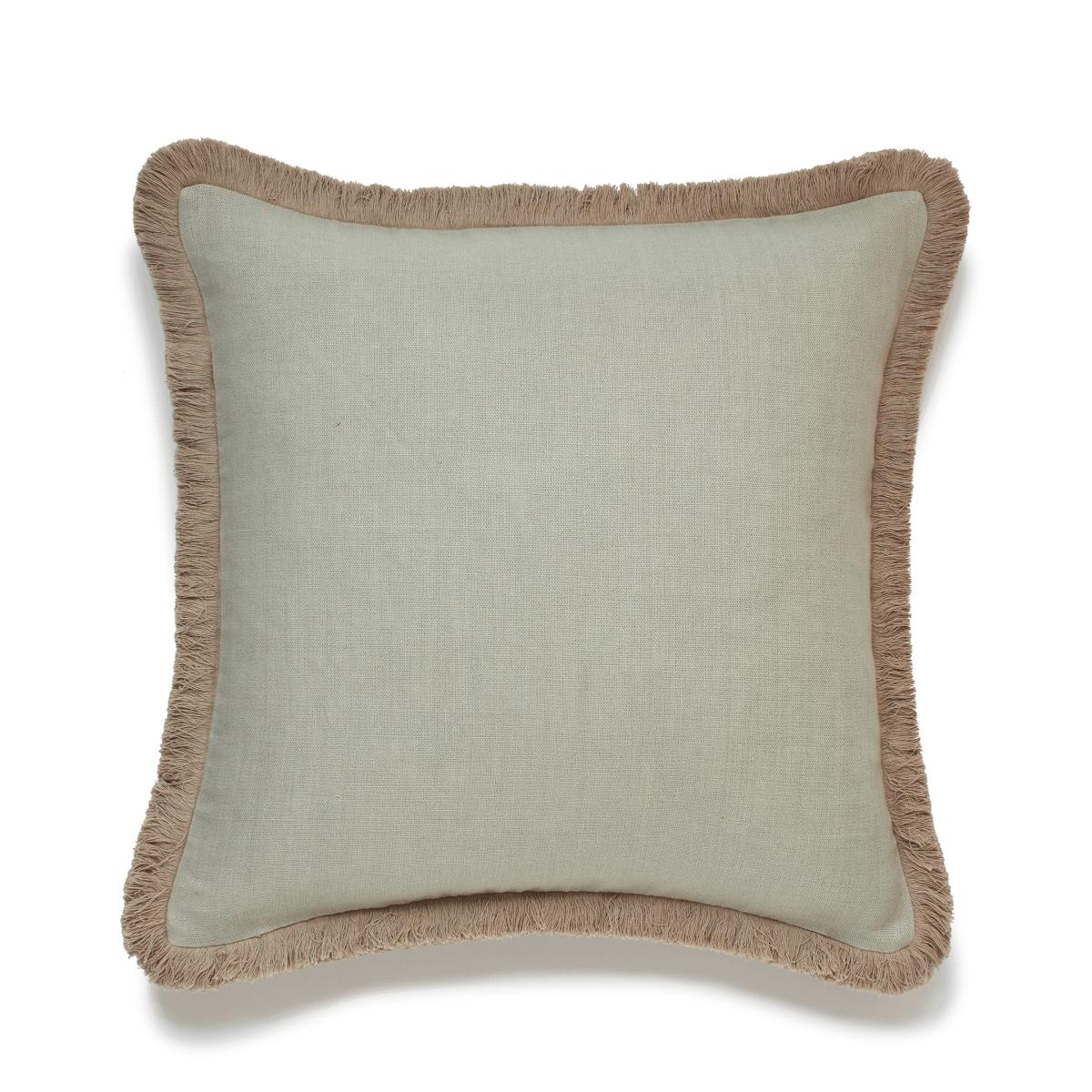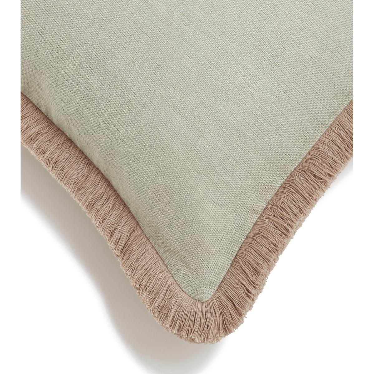 OKA, Linen Cushion Cover with Fringing - Eau de Nil/Off-White, Cushion Covers, Cotton/Linen, Printed