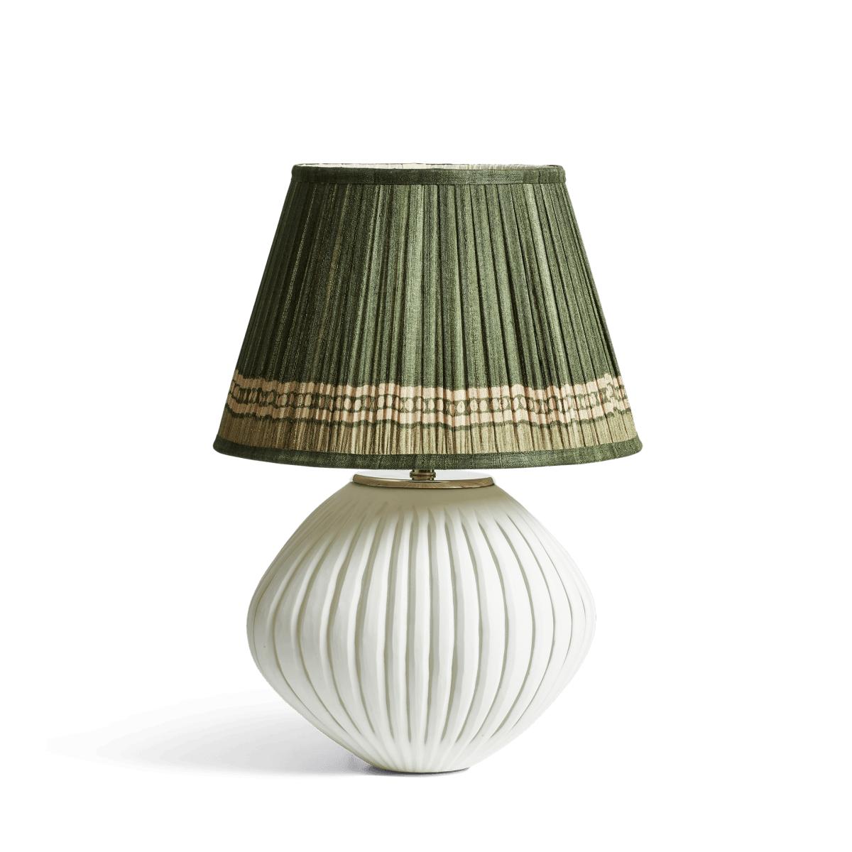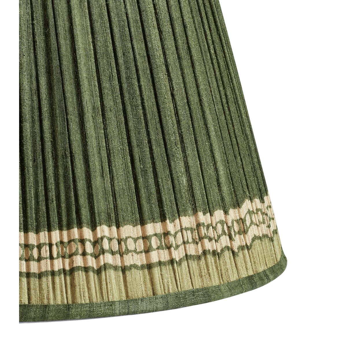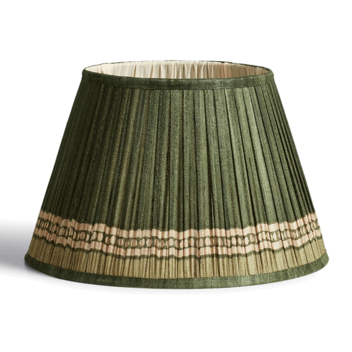 Our Longshan pattern has long been a favourite within our cushion collection, with its silk base and subtle block-printed border. We've now adorned our lampshades with the popular print, reimagining the cushion’s border so that it runs along the bottom of the shade like a pretty chain. With a muted Grey Green tone that's achieved through a hand-dyeing process, it will bring a gentle glow to any corner of your home. This is the smaller of two sizes.