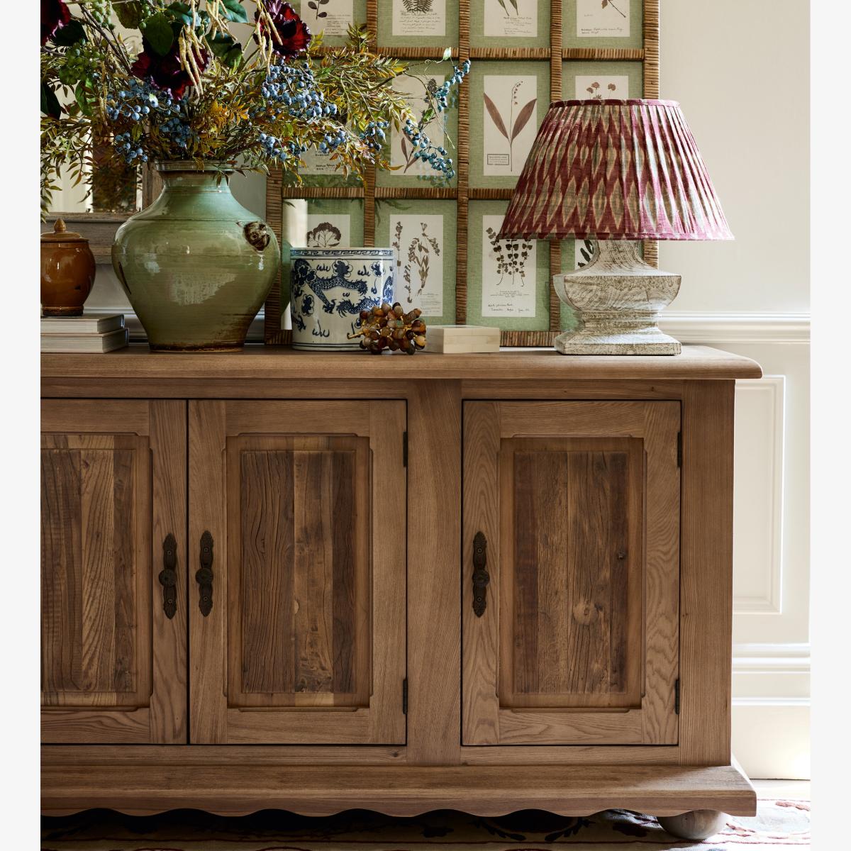 Giving any room a traditional touch, our Lowenna Sideboard is beautifully-crafted from natural recycled elm for a sustainable but stylish design, while it comprises four cabinets offering generous storage for crockery or glasses. Rather handily, the shelf inside can be removed, meaning you can adjust its configuration according to your requirements. The moulding detail, ironmongery and bun feet add to the sideboard’s charm.