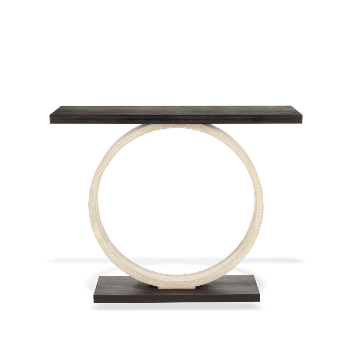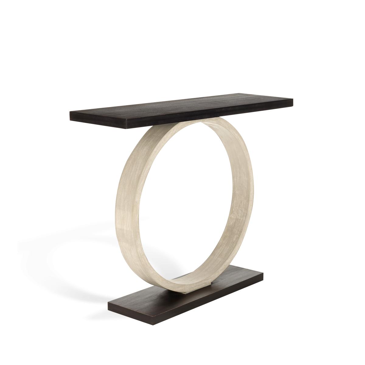 If you're looking for a signature piece, our new Magicus Console Table does the trick. A feat of great design, a sculptural wooden circle appears to balance two top and bottom wooden plinths with a painted black finish.