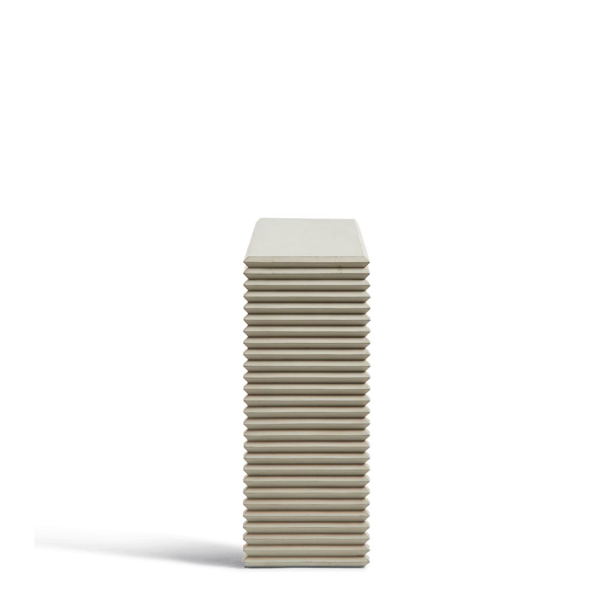 I love this console because of its clean, sculptural design that adds a touch of sophistication without feeling too formal. The chalk finish gives it a versatile, neutral tone that works well in both contemporary and traditional interiors. It’s particularly effective as an entryway piece or behind a sofa where its slim profile won’t overpower the space. For styling, consider keeping the top uncluttered with a statement lamp, a slim vase, or a few carefully chosen decorative books - this lets the unique ribbed legs truly stand out. Practically, its sturdy build and modest dimensions make it ideal for small hallways or narrow corridors, while its simple silhouette keeps the overall aesthetic fresh and uncluttered.