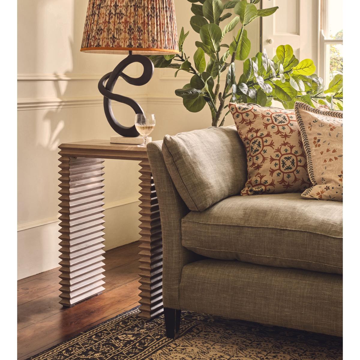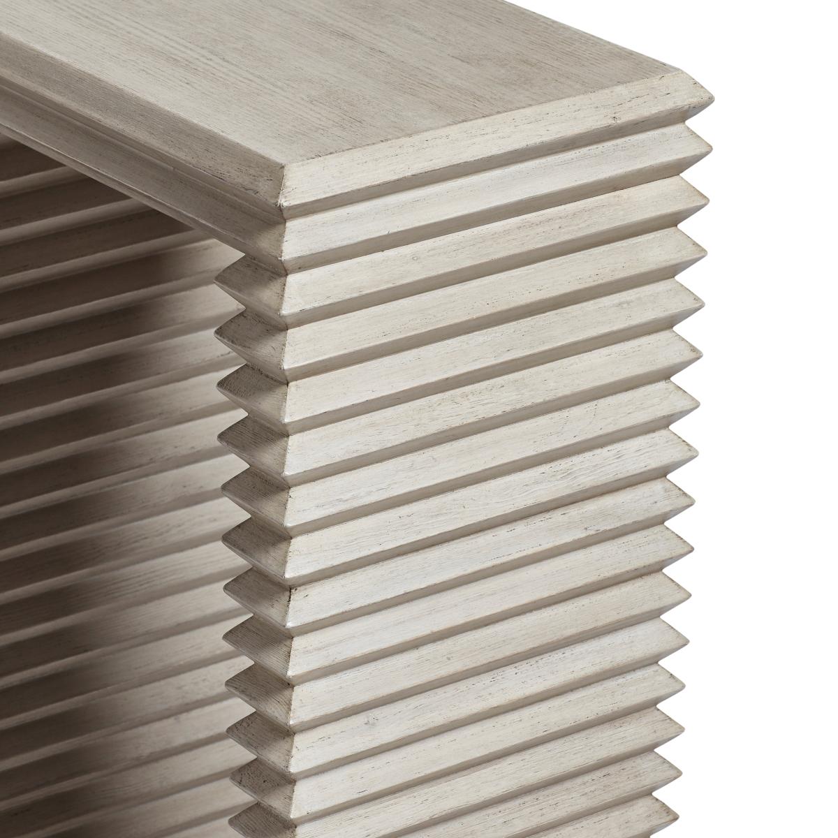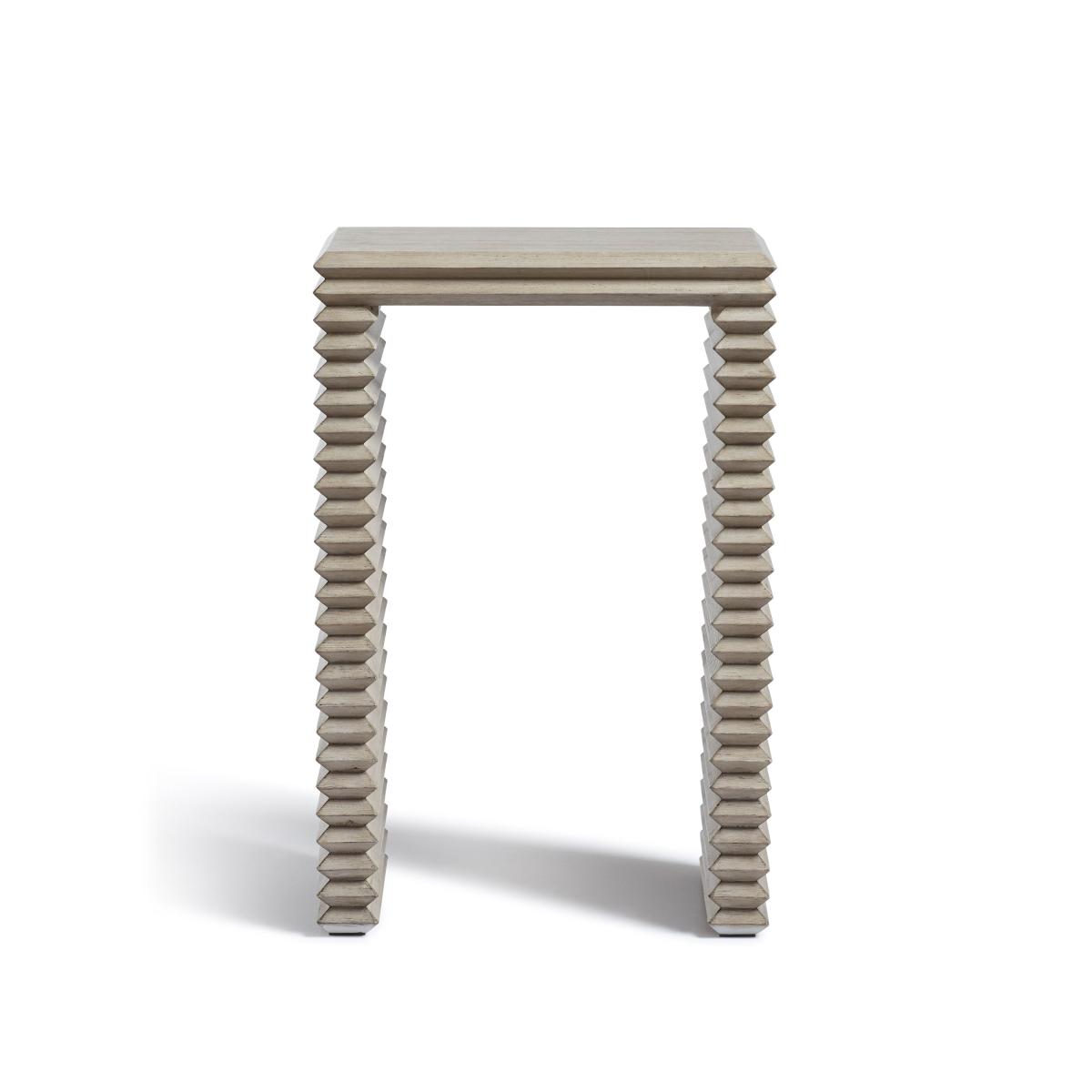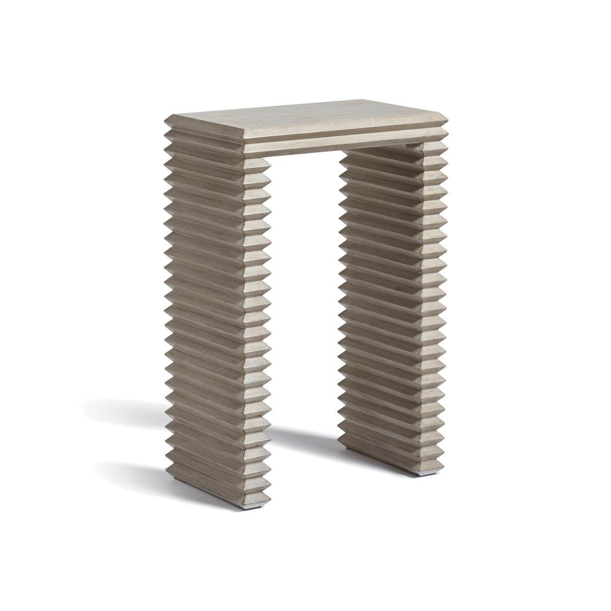 The elegant simplicity of this side table is offset by the unique detail of its legs - which reminded us of accordions. A grey wash finish allows the natural beauty of the wood to shine through with a hint of pearlescence. This table will fit perfectly into a modern sitting room or bedroom.