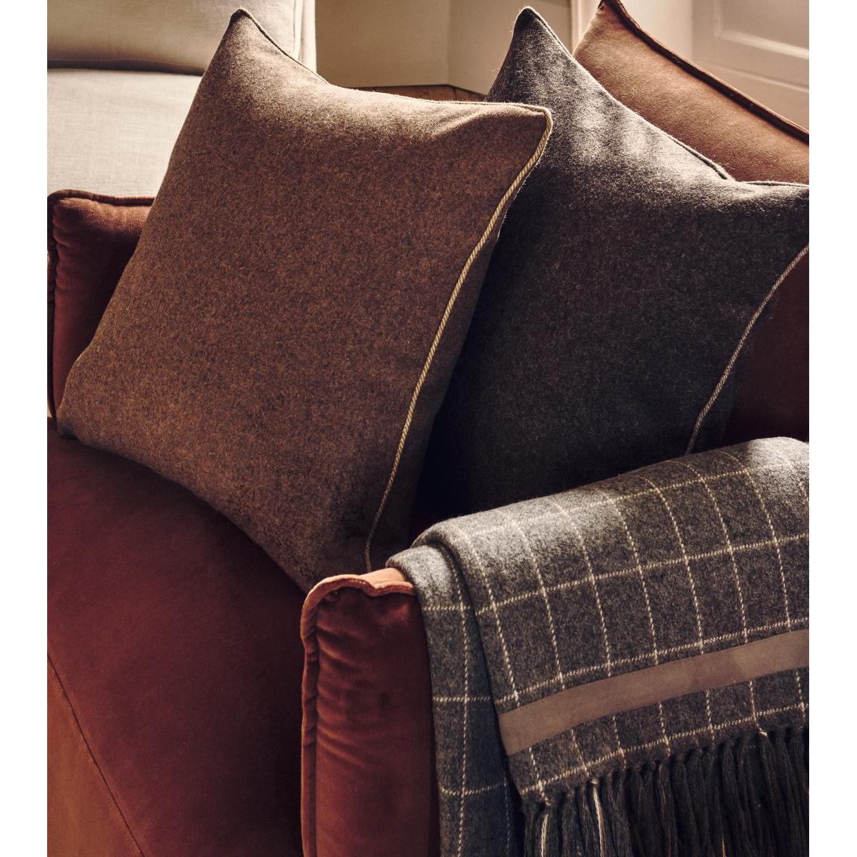 Our Makenna Cushion Cover is made from high-quality Australian merino wool. This material is among the best wools because the climate offers the perfect conditions for rearing sheep, which results in the longest spun yarns available. The yarns are spun and dyed for weaving in Scotland, where the colours are chosen to reflect the splendour of the surrounding Scottish highlands.