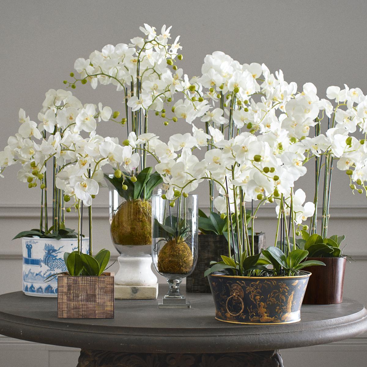 If you haven't investigated faux plants for a few years, you will be surprised at just how lifelike they have become. Our Faux Phalaenopsis Orchid now comes with a planted bulb base covered in faux moss for a realistic finish.