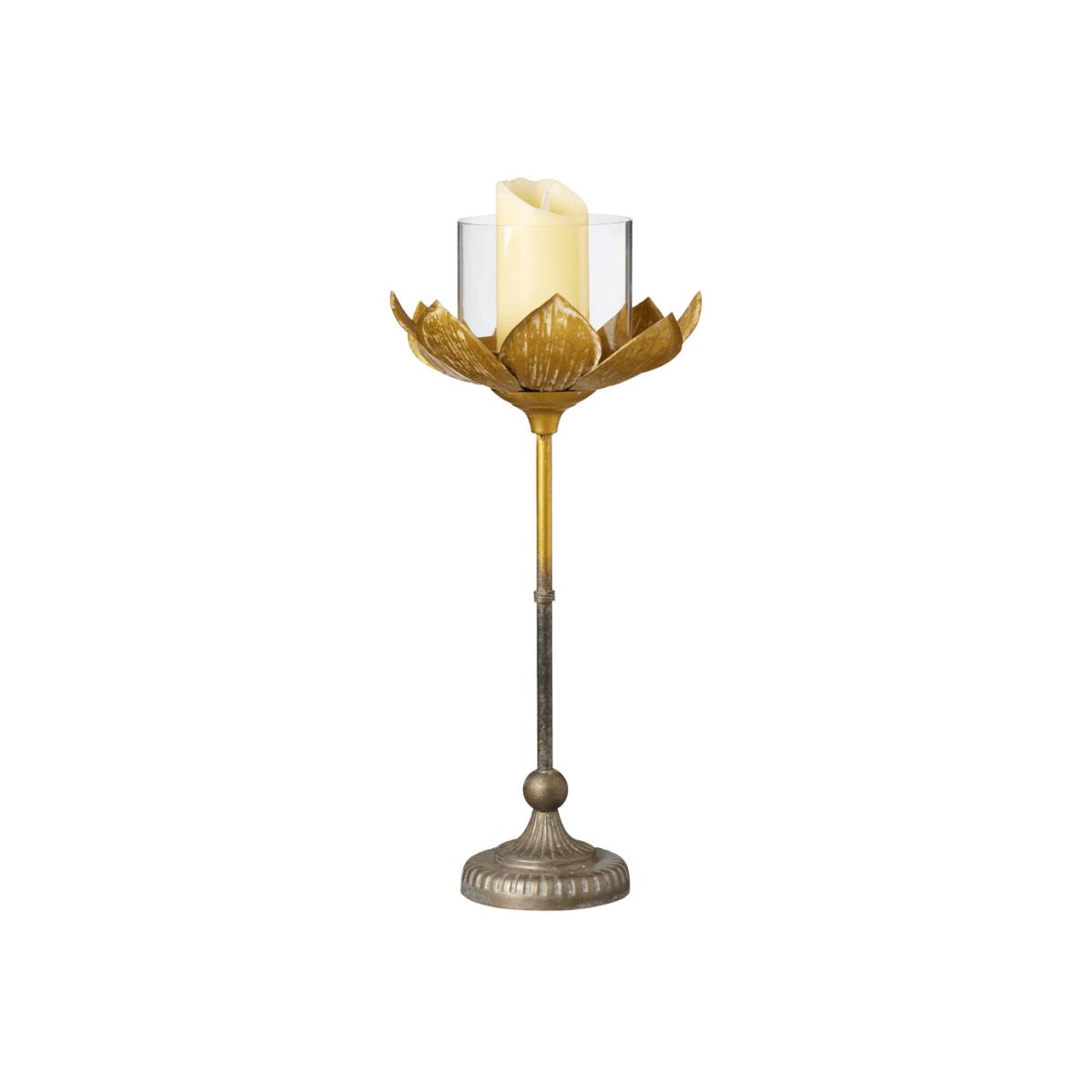 OKA, Medium Lotus Candle Holder - Gold, Candle Holders, Glass/Metal