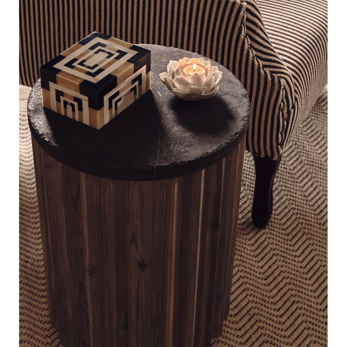 Named for its fluted recycled pine base, the Melodeon Side Table is a great addition to interiors. Some of the pine is over 100 years old, repurposed from the beams, old doors, walls and floors of derelict houses in China, steeping each piece in history. The stone for the tabletop is the same as that chosen for our Flavian Range – cut from a large piece of mountain stone, naturally bleached by the sun, it features meandering white veins formed by crystallised minerals. For this reason, each textural surface is totally unique.