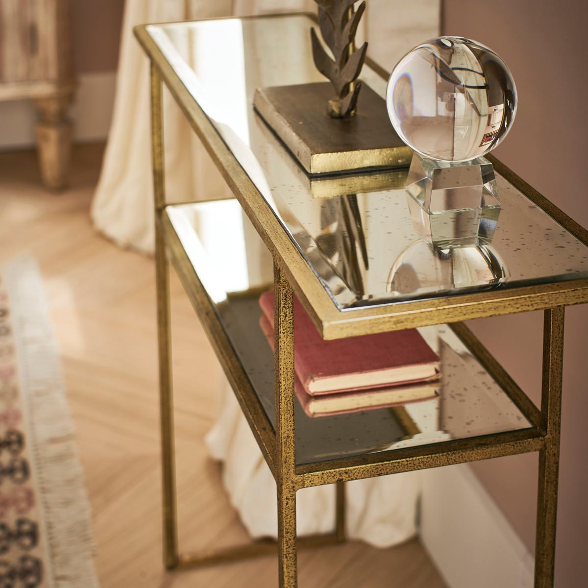 OKA, Merle Console Table - Antiqued Glass, Console Tables, Glass