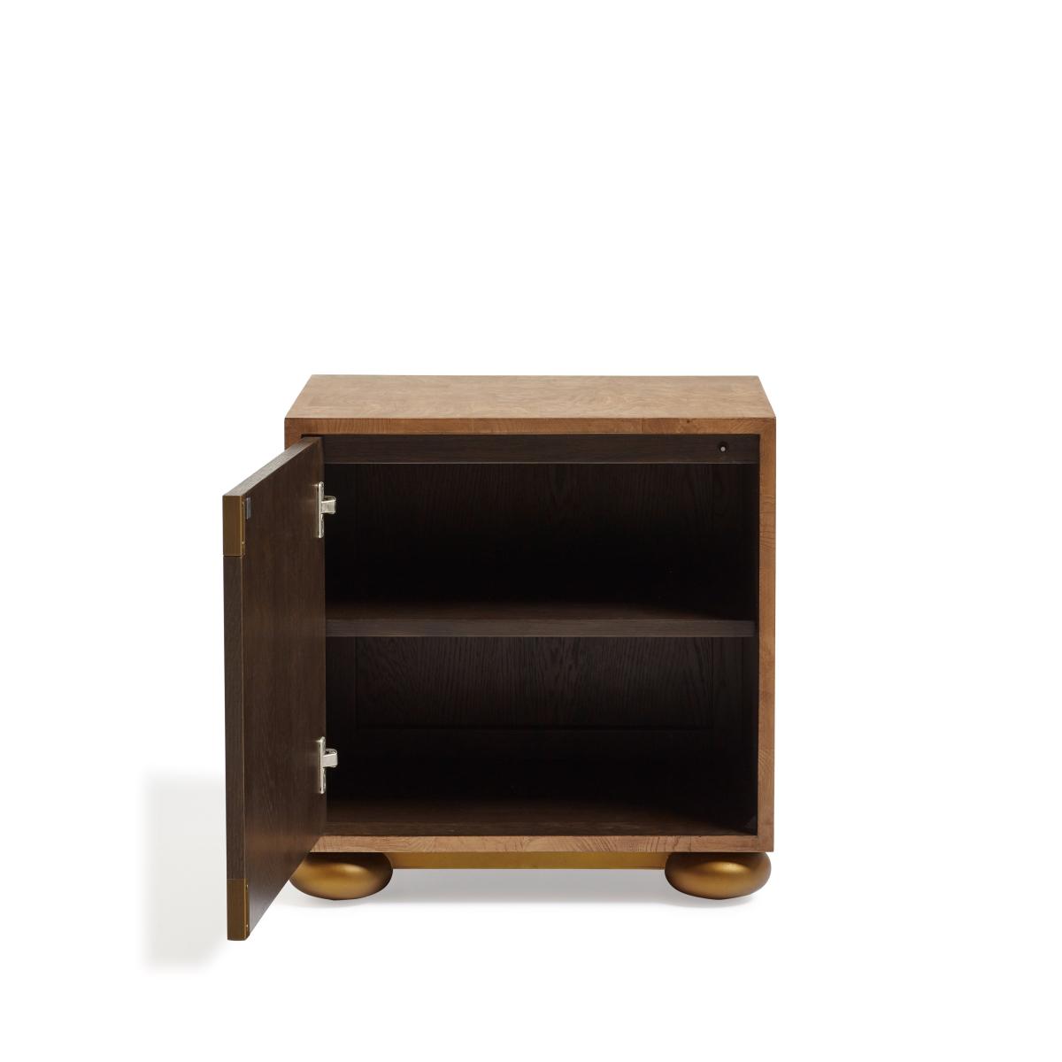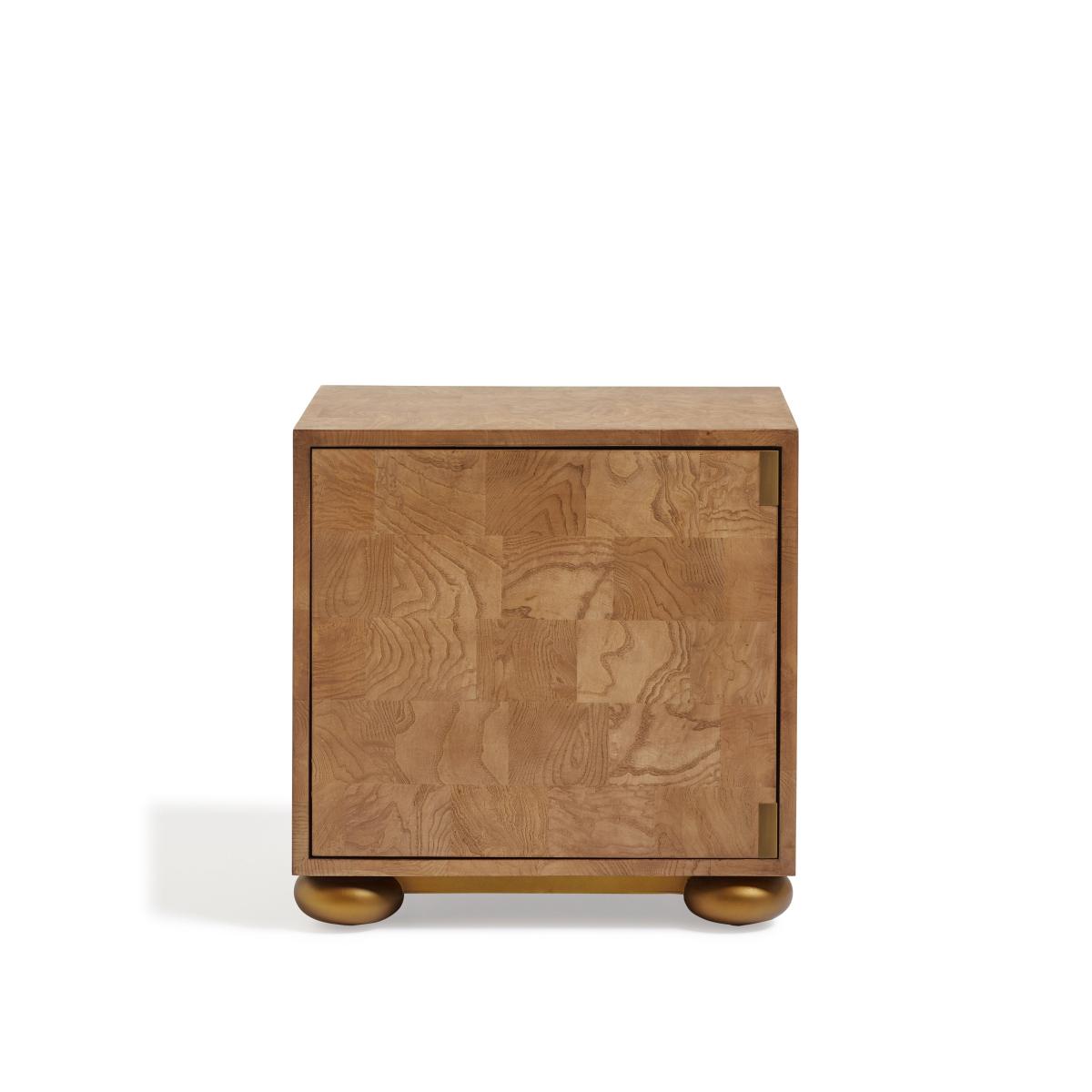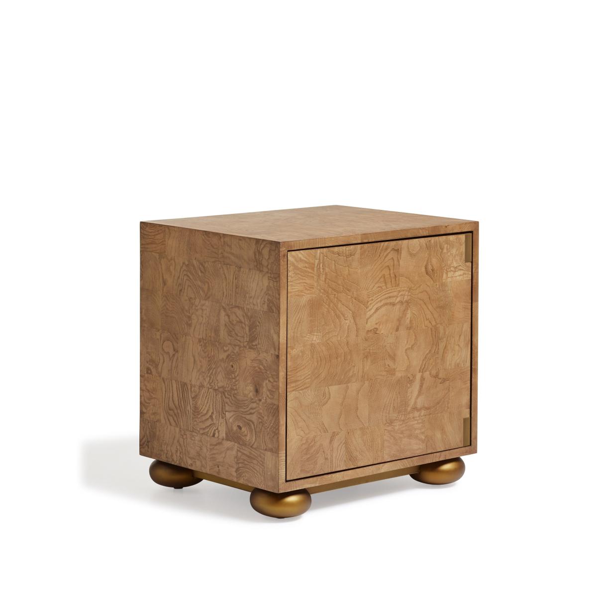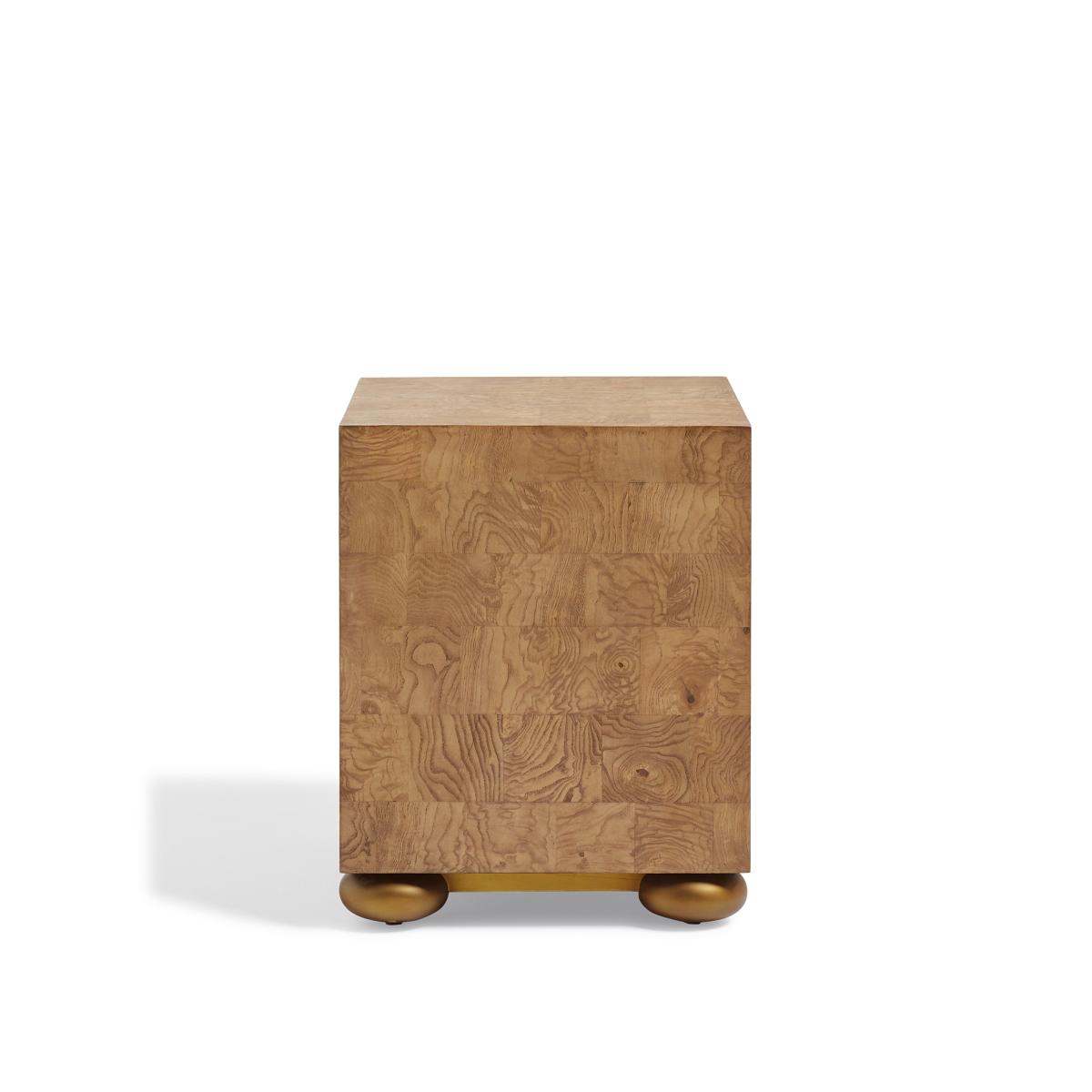 In Greek myth, everything Midas touched would turn to gold, therefore it seemed a fitting name for our Midas Range, with its touches of gold on the bun feet and metal plates at each corner. The beautiful and unusual grain of the wood is produced from highly sought-after burl wood - this is a cross section of the knots that form on trees, and so features a swirling pattern referred to as a 'wild grain', that requires highly skilled craftsmen in order to cut it without splitting the wood. Due to the material and artisanal techniques used for this side table, each piece will have individual characteristics that add to their charm.