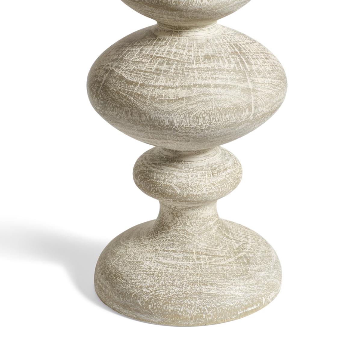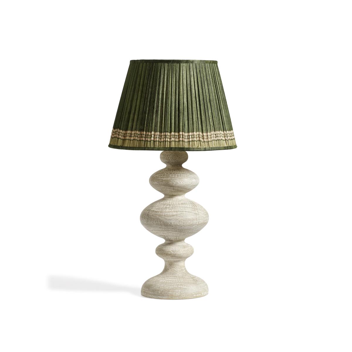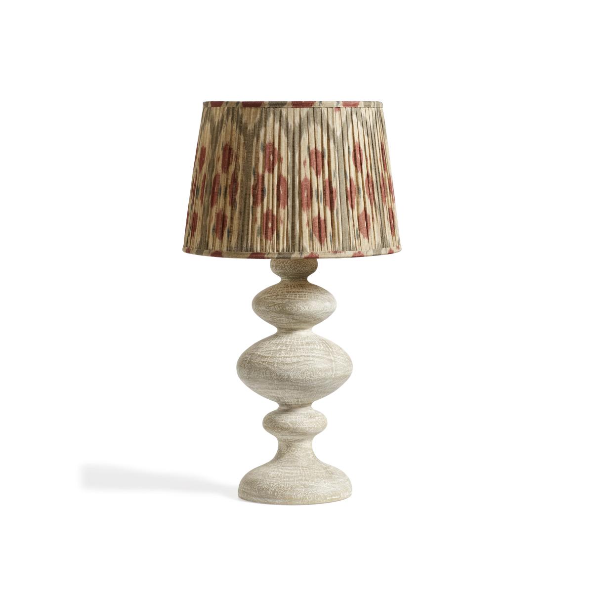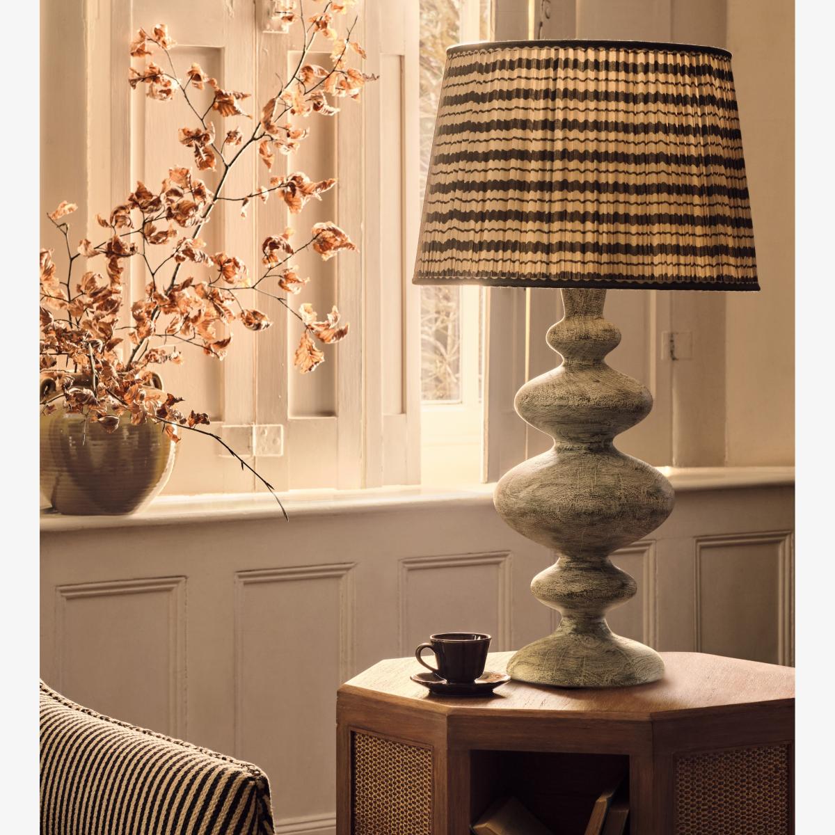 Our original metal Minerva Table Lamp has had an update in the form of this carved wood table lamp. It's a great way of introducing curves into a linear scheme. Finished in versatile Cloud Wash, the natural wood grain is visible through the sheer coverage, and it will blend with most colour schemes.