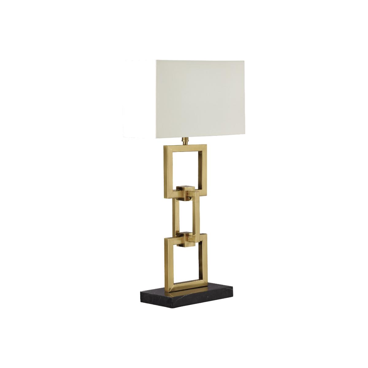 This elegant table lamp is the epitome of sophistication. Its marble base pairs beautifully with its interconnecting iron squares, which are finished to a stunning antique brass colour. The Morcent is slender by design, so it won't take up any valuable space on your side table.