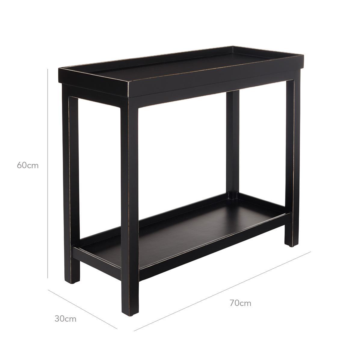 I really like this narrow jet side table because of its clean, streamlined silhouette and versatile black rubbed finish. It works well in contemporary, minimalist, or even industrial interiors, adding a subtle touch of sophistication without overpowering a space. Its slim profile makes it perfect next to a sofa or bed, offering practical surface space for lamps, books, or decorative accessories. For styling, consider pairing it with contrasting textures like a soft cushion or a textured vase to add visual interest. It also works cleverly in small spaces, providing functionality without crowding, making it a handy piece for both living rooms and bedrooms.