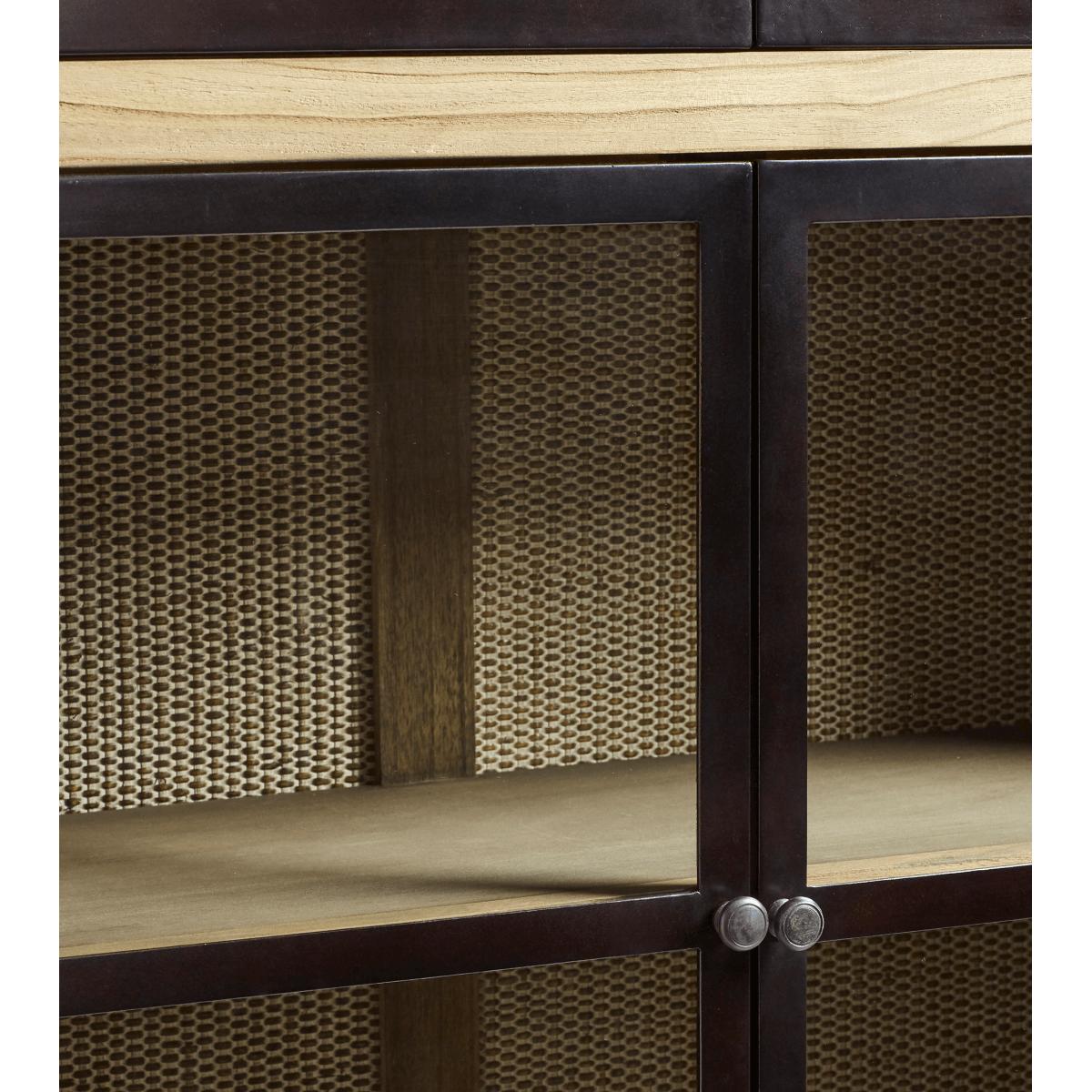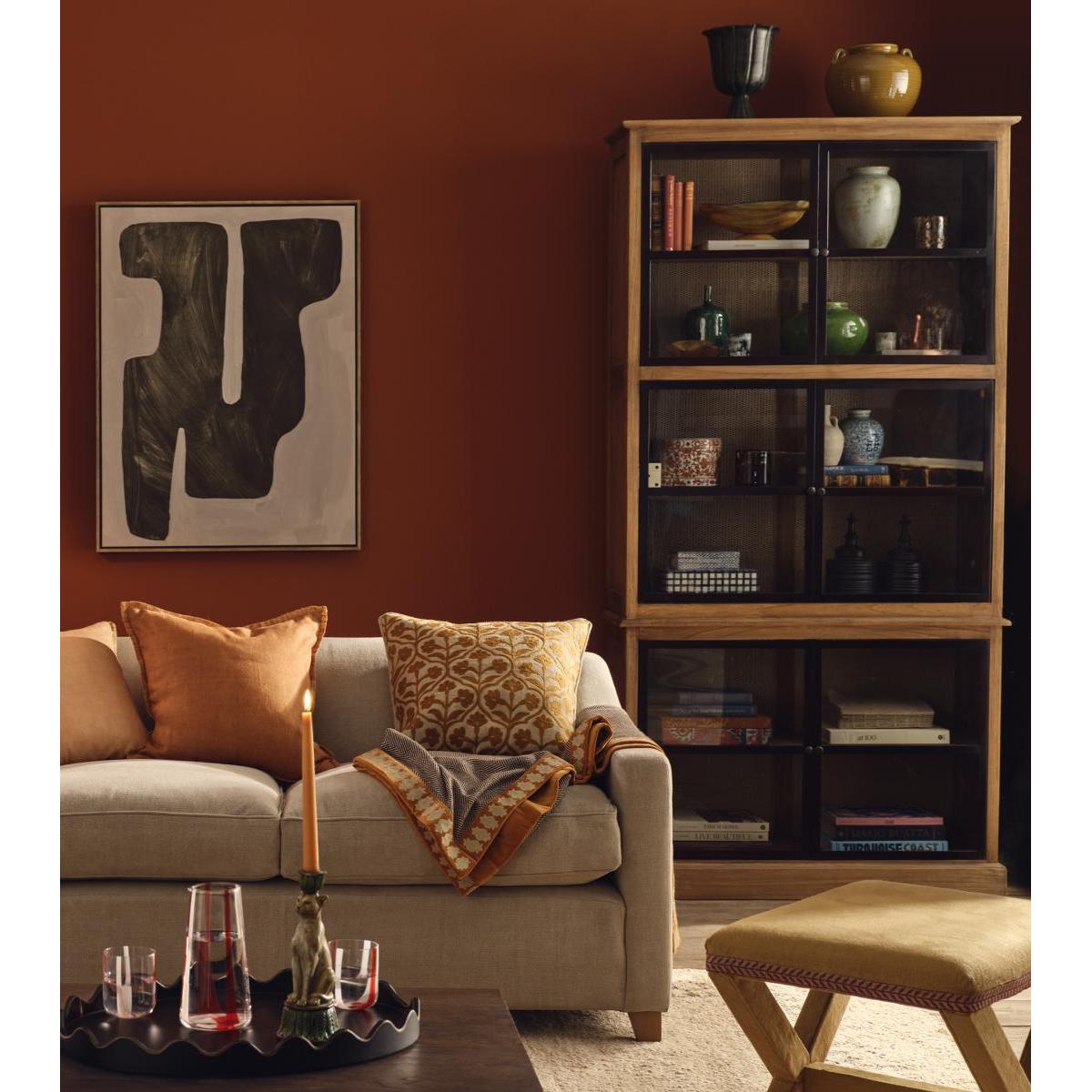 Creating a balance between the traditional and the modern, our Narrow Pentomino Display Cabinet borrows from typical London architecture with its bronze-framed Crittall-style windows. Behind its façade sit rattan panels that line the back of the cabinet for added texture. This piece, handmade from bayur wood, is deep enough to fit our large charger plates. Due to the natural materials used, each piece will have individual characteristics.