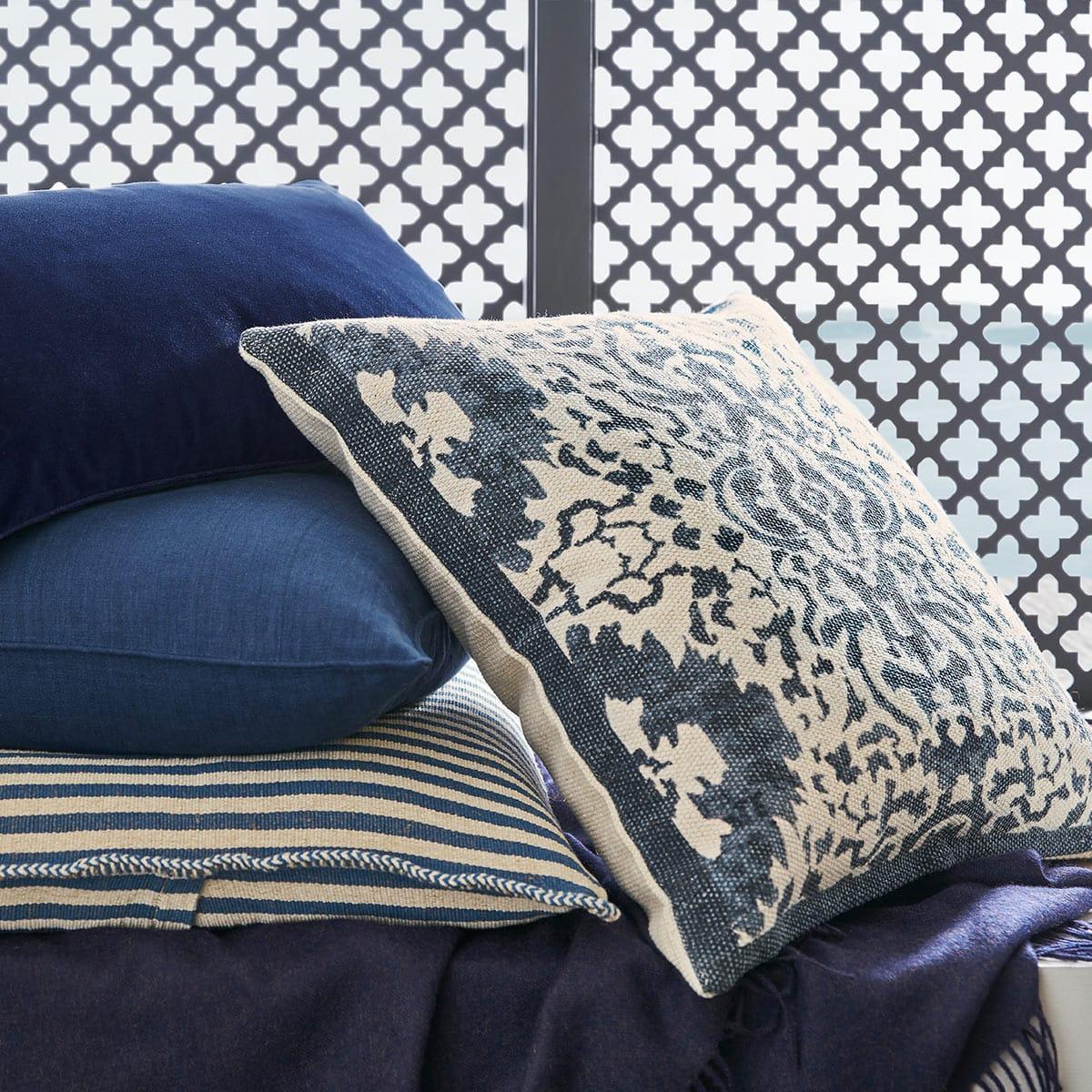 OKA, Nesbitt Cushion Cover - Blue, Cushion Covers, Cotton, Printed