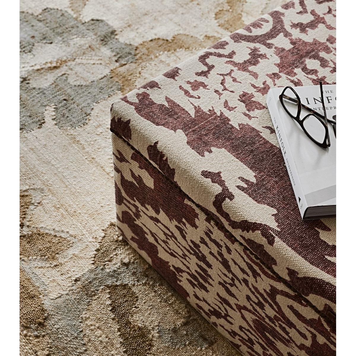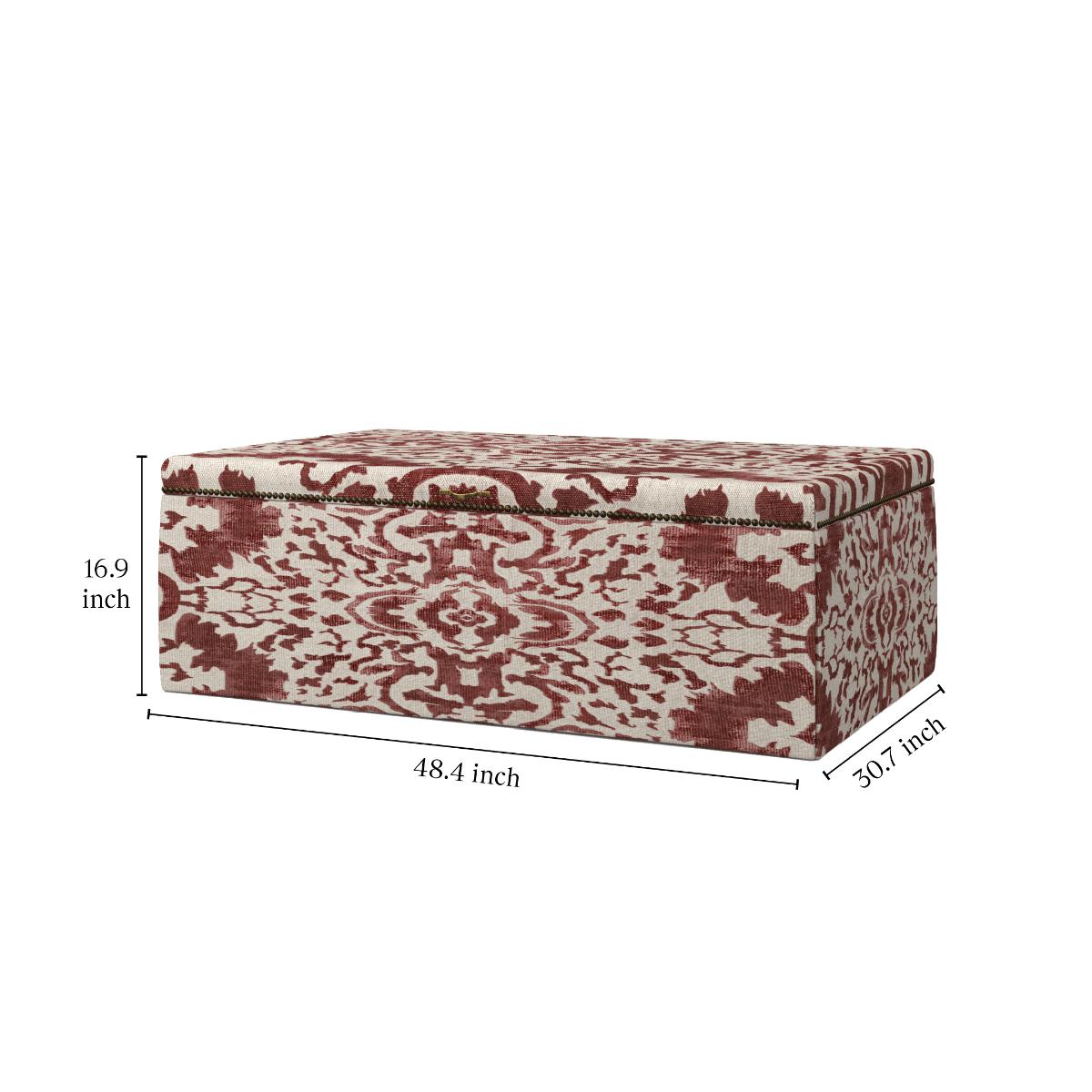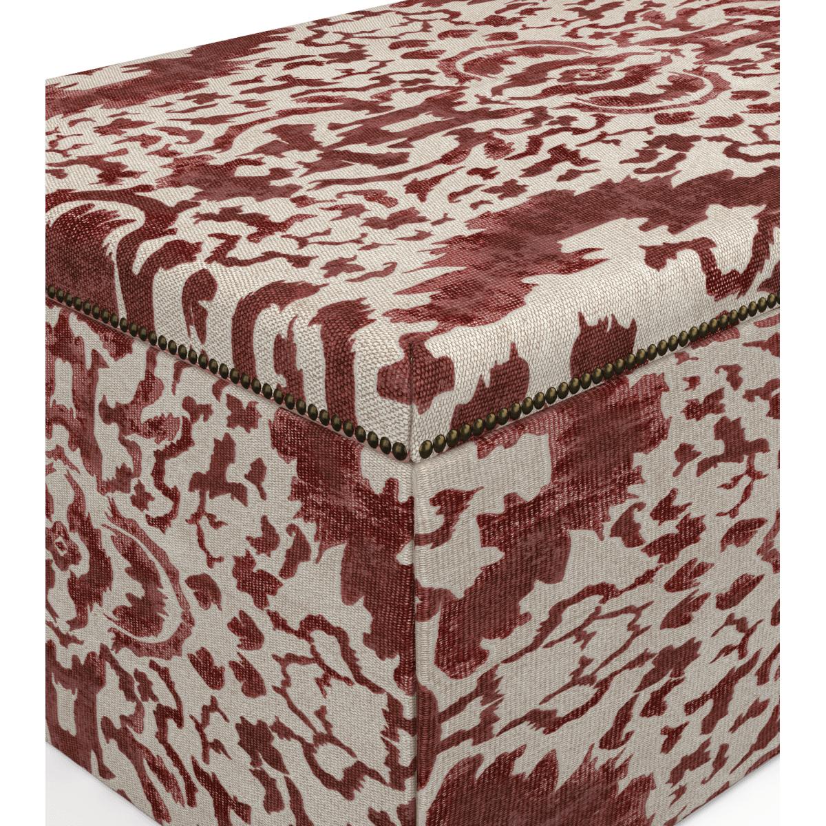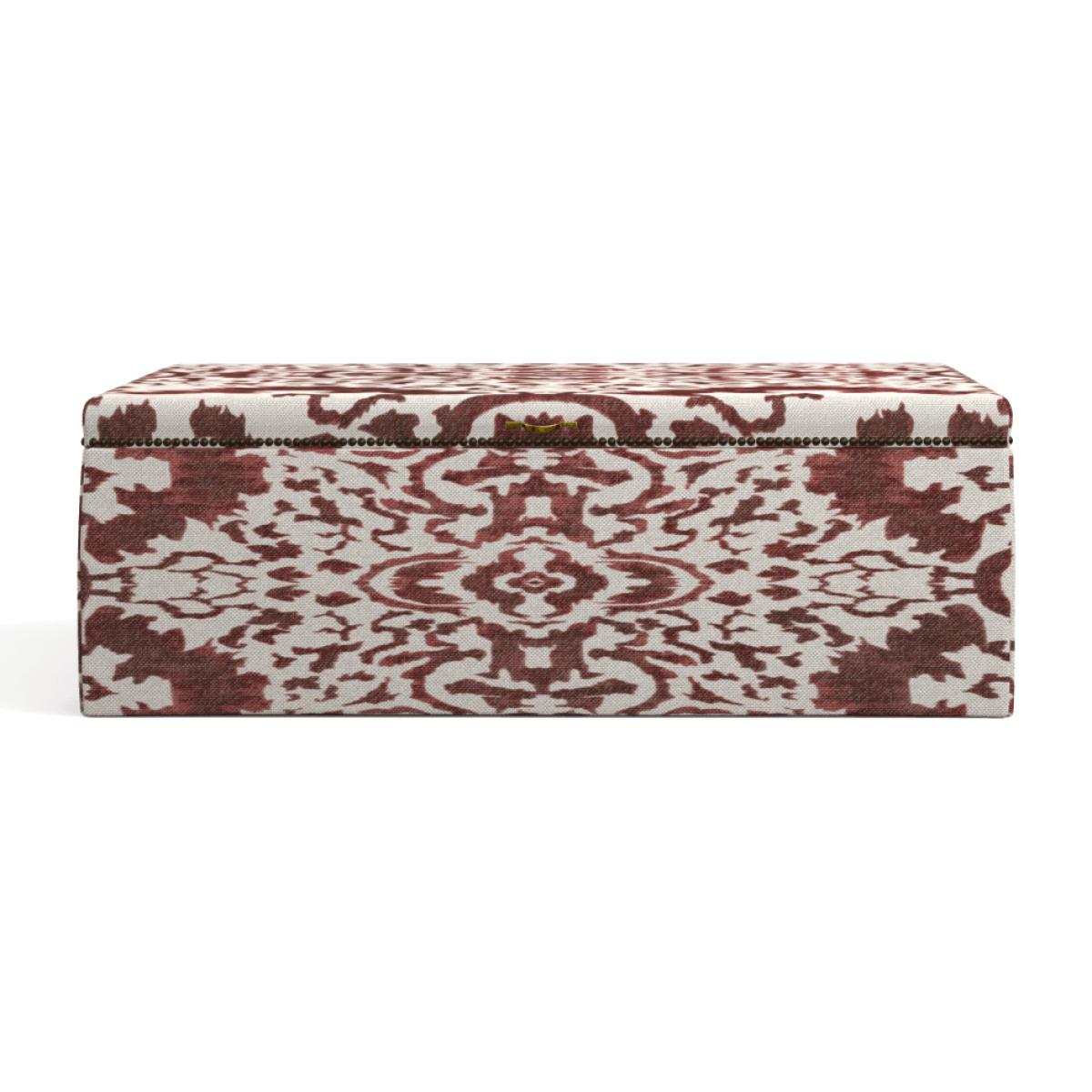 Ottomans such as the Nesbitt are a useful and multifunctional addition to any home; as bedroom or sitting room storage, the design can be filled to the (brass-coloured, studded) brim with toys, towels or throws. Alternatively, use it as an informal, low-sitting coffee table. Beyond its practical assets, the ottoman's red abstract pattern adds visual interest and imbues a room with a sense of warmth. Due to the artisanal craft process, each piece will have individual characteristics.