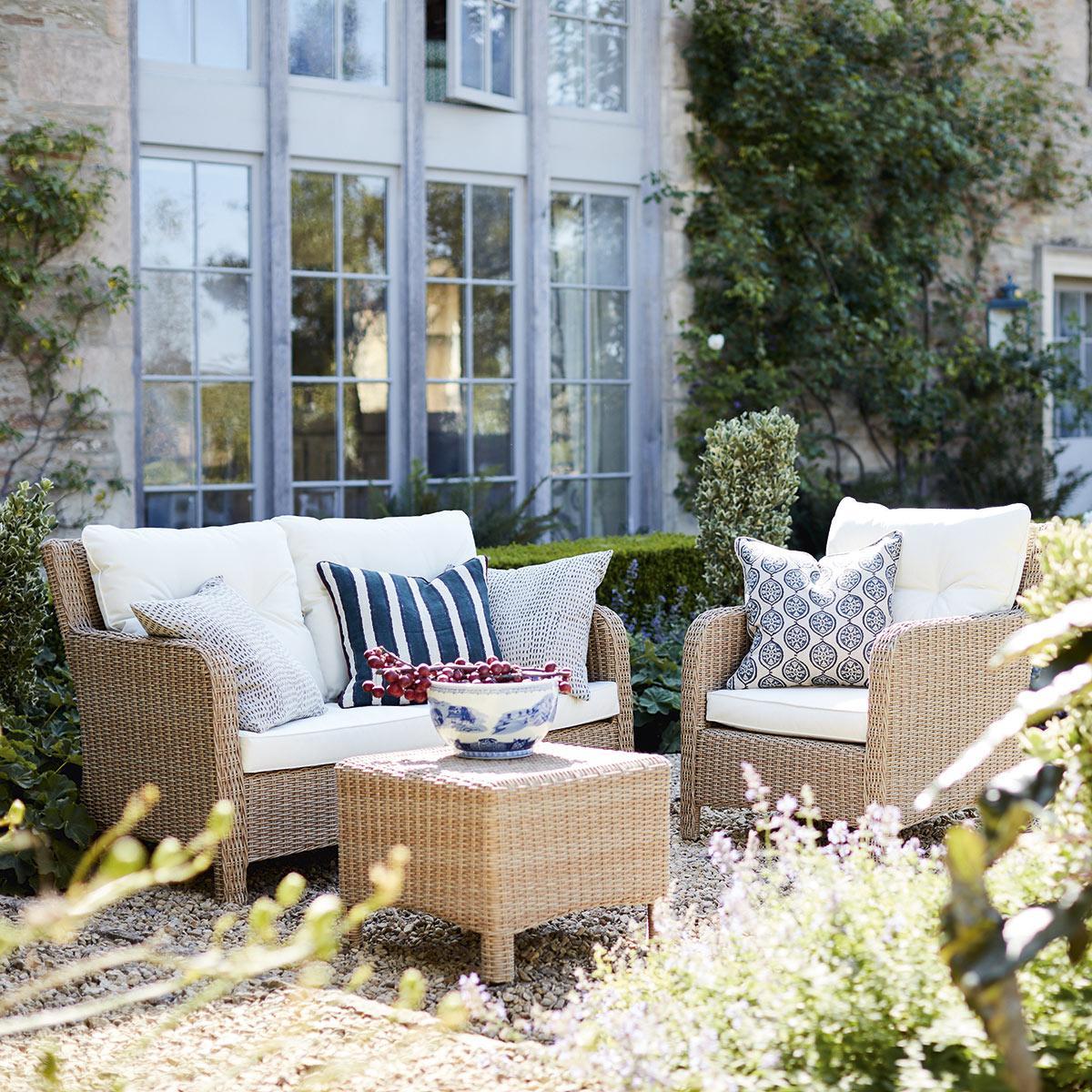 I love this two-seater as it offers a classic, versatile look that works well in both traditional and contemporary outdoor settings. Its off-white hue makes it easy to pair with colourful cushions or throws, allowing you to personalise your garden space effortlessly. The all-weather rattan construction adds durability, making it ideal for year-round use without compromising on style. For practical styling, layering with textured textiles or incorporating greenery around the sofa creates a relaxed, inviting atmosphere. It’s perfect for cosy chats or outdoor lounging, and its neutral tone ensures it complements a wide range of colour schemes and garden themes.