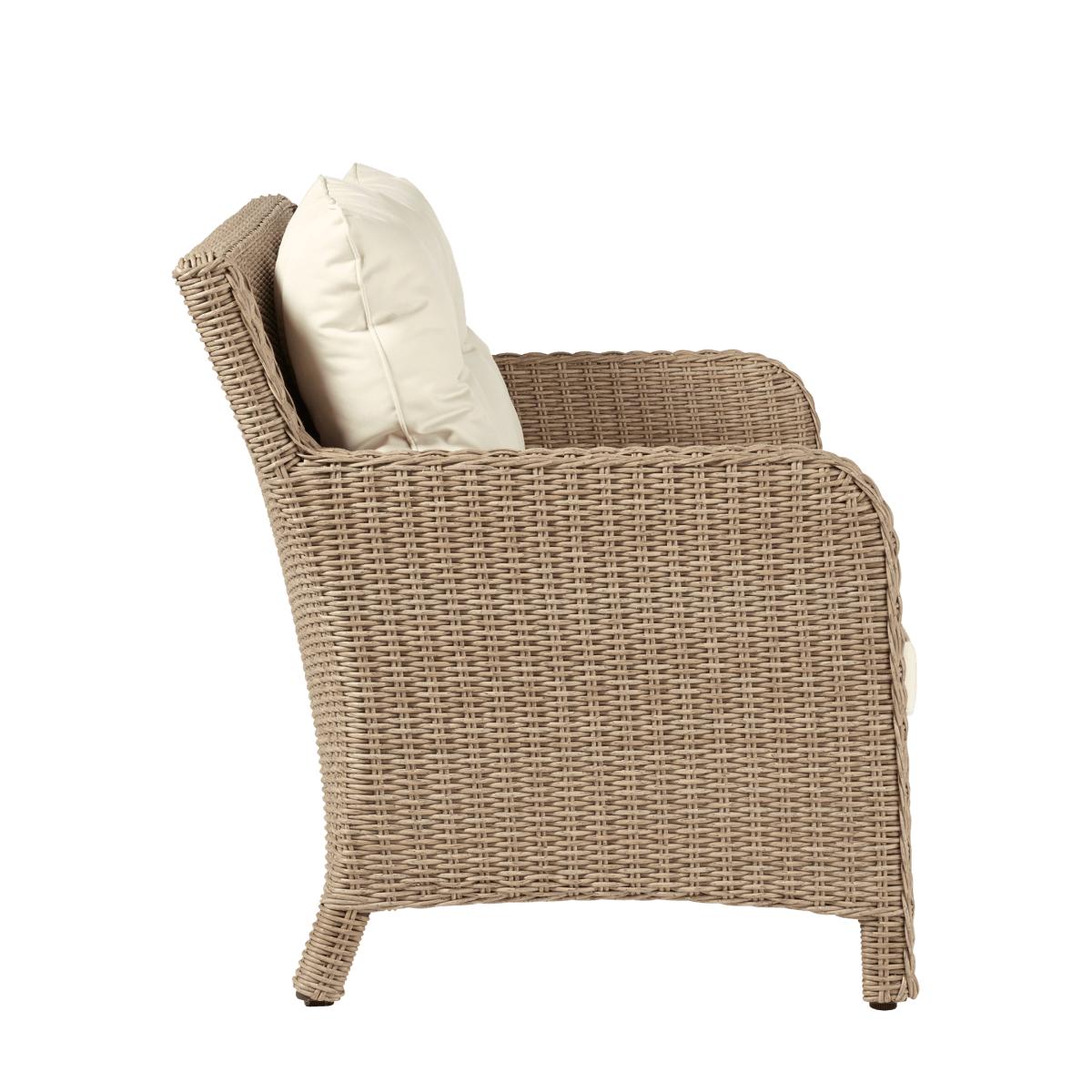 Handwoven in a traditional basket weave from our all-weather "rattan", the New Hampshire Two Seater Sofa includes deep, weather-resistant seat and back cushions for maximum comfort and practicality.