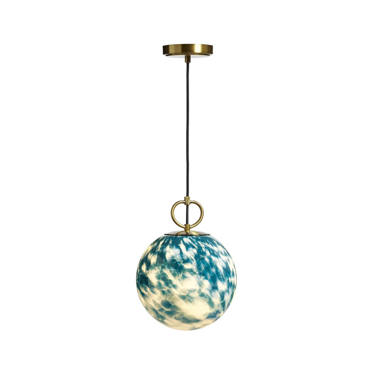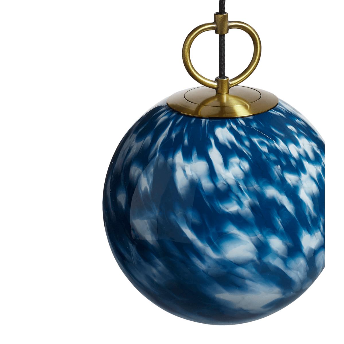 The beautiful orb-like shapes of our Nimbus Pendant Lamps are crafted from mouth-blown glass. This process is what gives each piece its distinctive colouring and shape, with each one different from the next. The way that the blue and white blends together reminded us of the patterns found in a cloud-filled summer sky, which is what inspired its name. The glass shade is finished with brass fixtures and a black fabric cord.